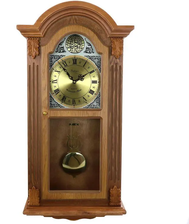 Bedford Clock Collection Honey Oak Chiming Pendulum Wall Clock 510119804M