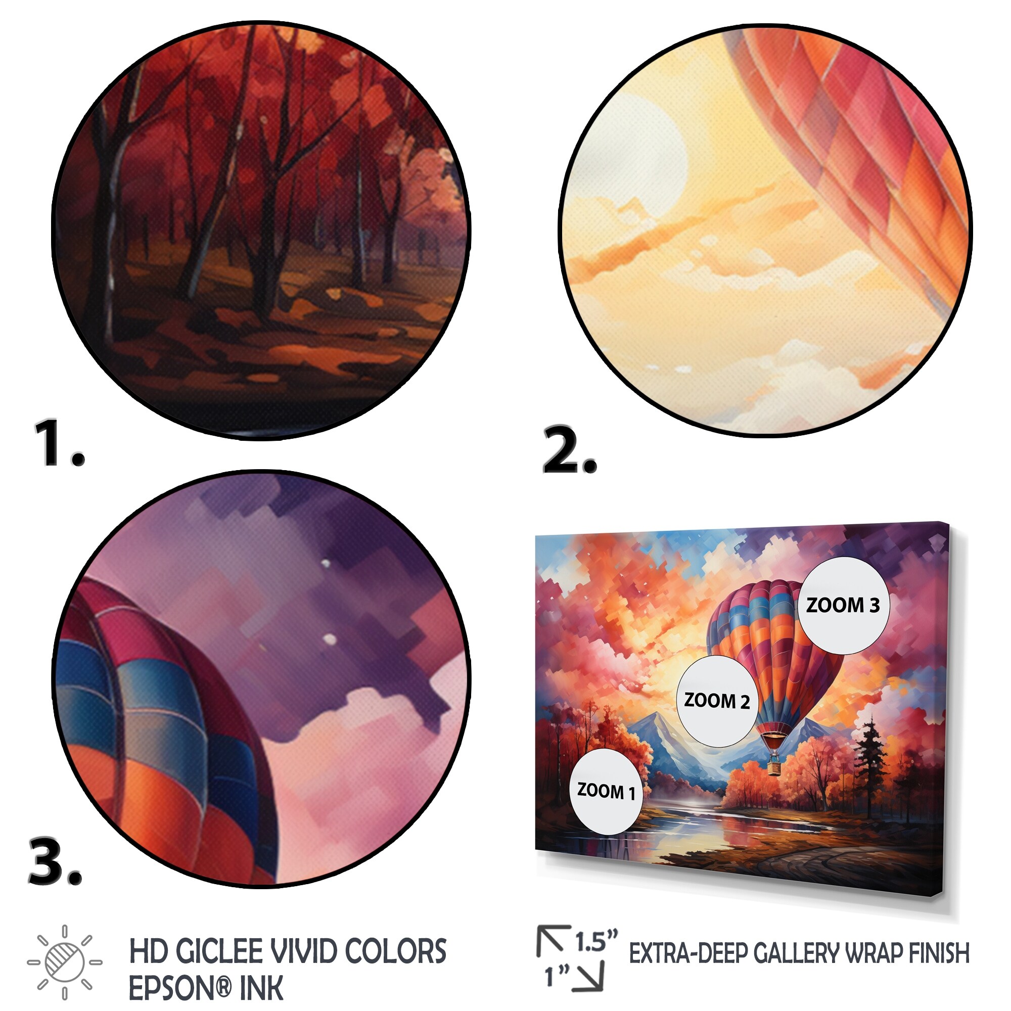 Designart "Colorful Airballoon Views II" Hot Air Balloon Framed Canvas Prints