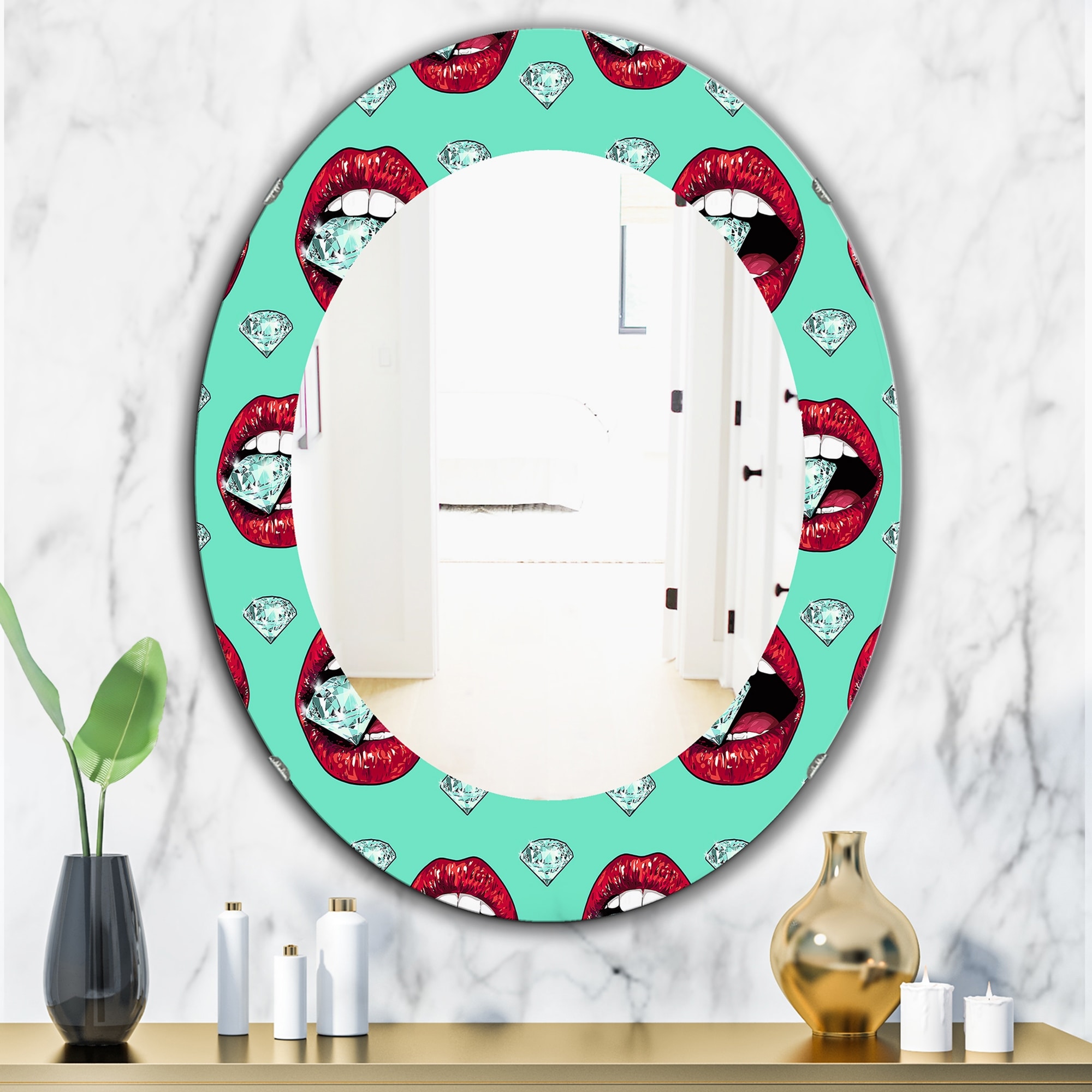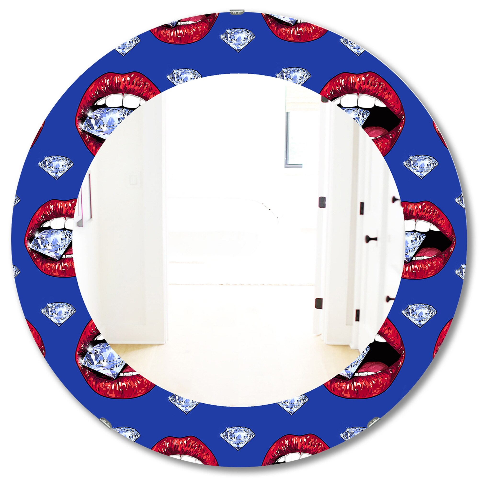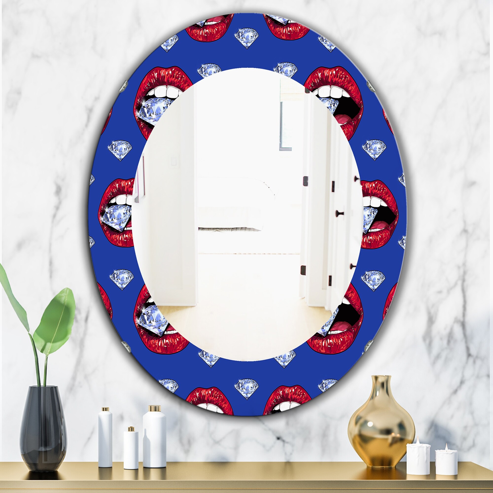 Designart 'Hot Lips I' Printed Modern Mirror - Oval or Round Wall Mirror - Blue