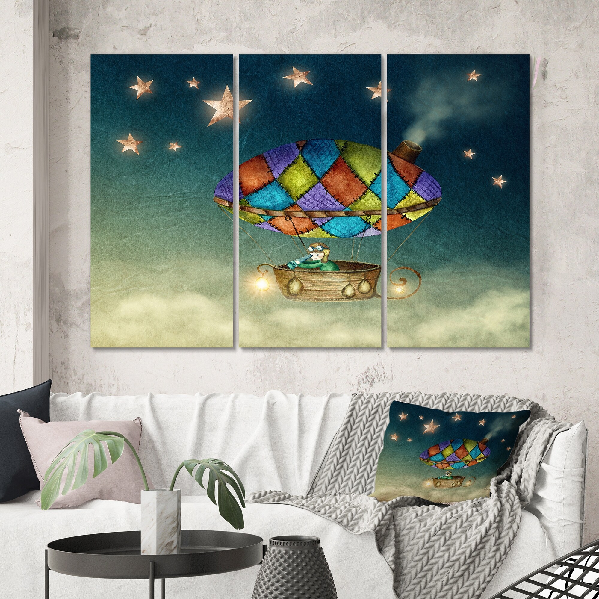 Designart "Hot Air Balloon in Starry Sky" Country Canvas Wall Art Print