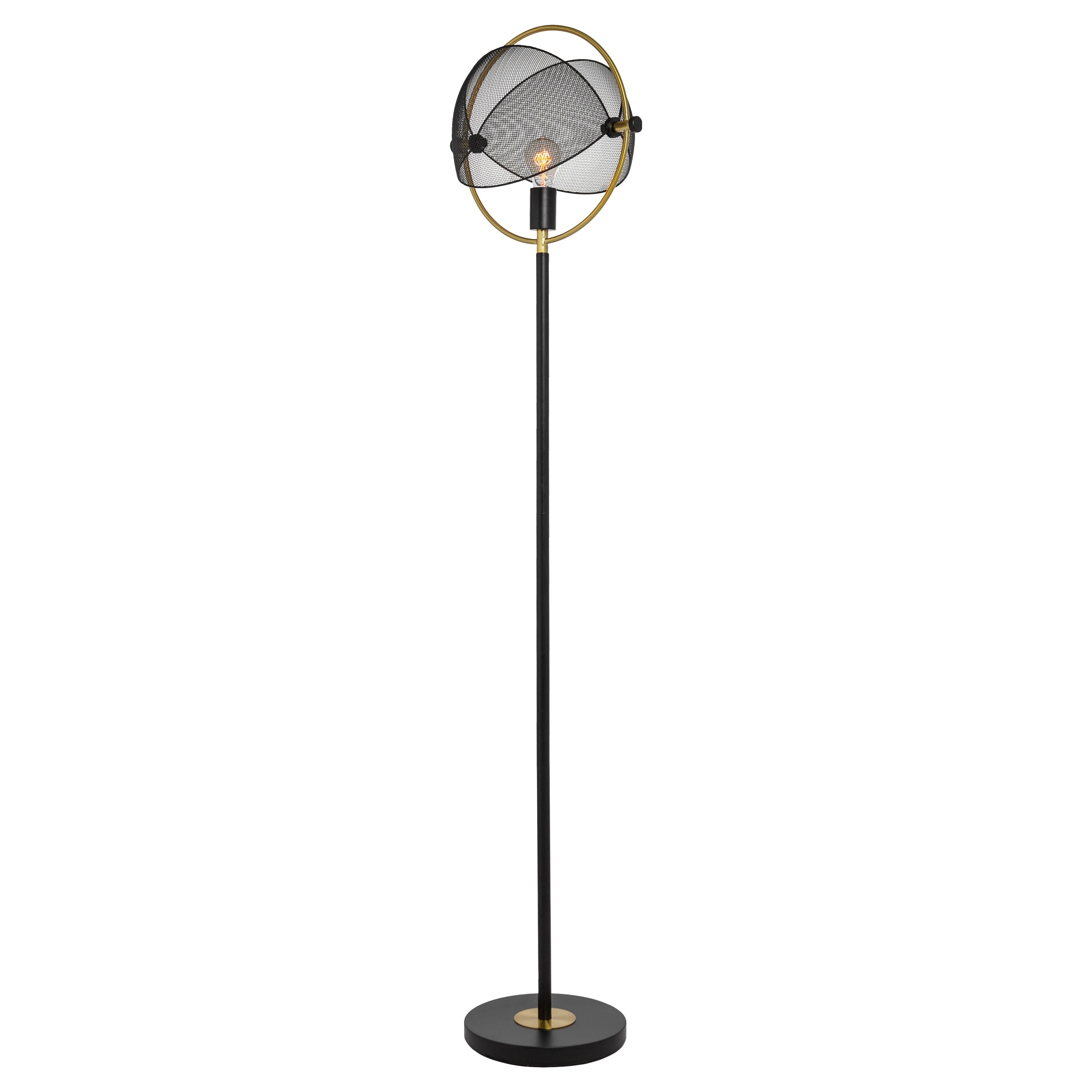 Houston River of Goods Black and Gold Metal Mesh Globe Shade 63.25-Inch Floor Lamp - 14.625" x 12" x 63.25"