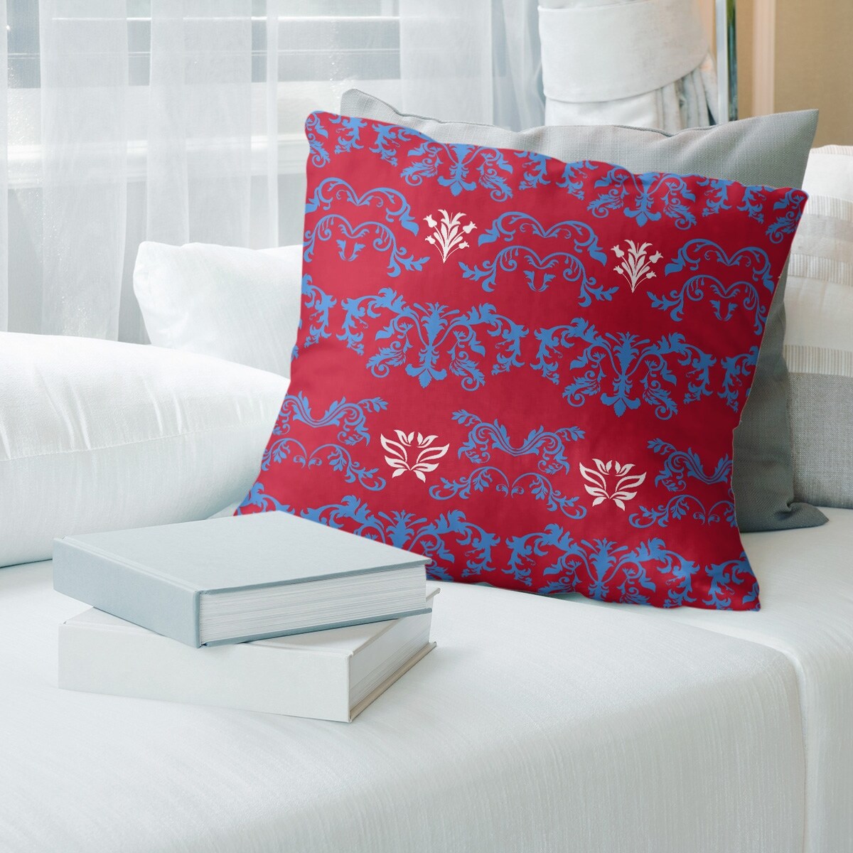 Houston Football Baroque Pattern Accent Pillow-Cotton Twill