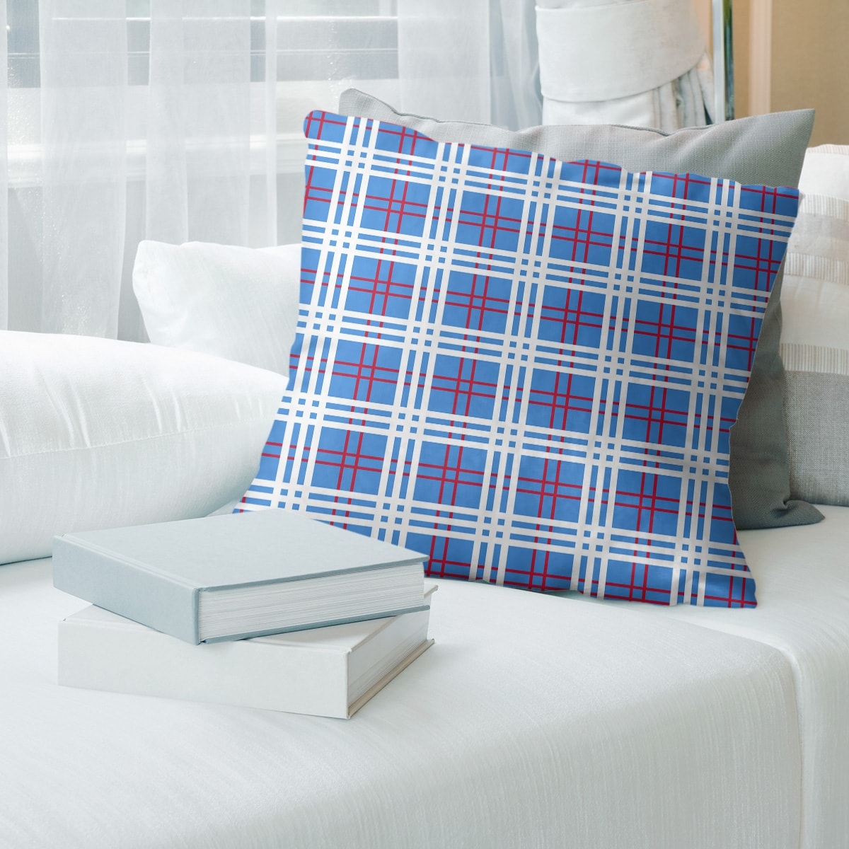 Houston Football Luxury Plaid Accent Pillow-Cotton Twill