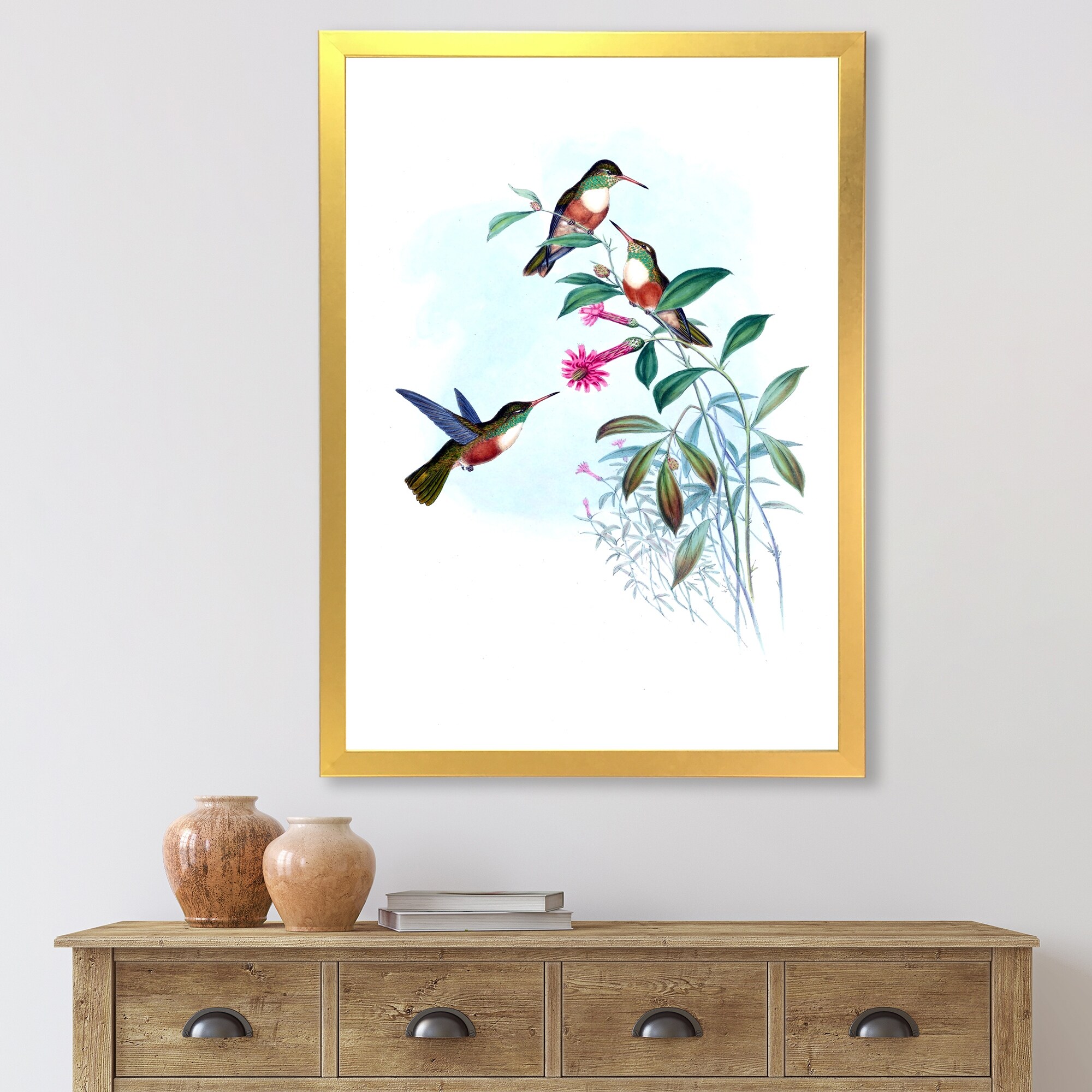 Designart "Vintage Hummingbird IV" Traditional Framed Art Print