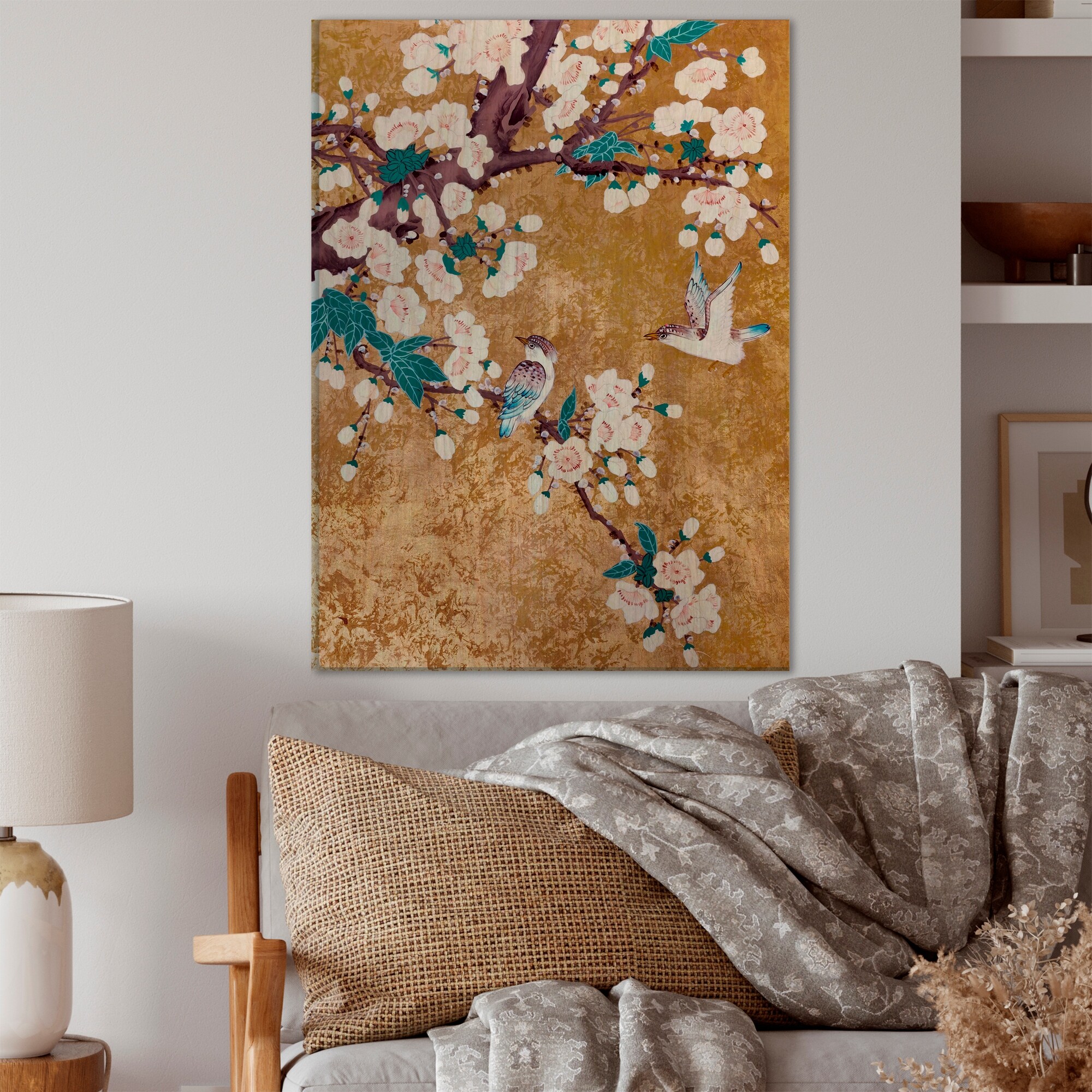 Designart 'Hummingbirds And Cherries Flowers' Traditional Wood Wall Art Panels - Natural Pine Wood