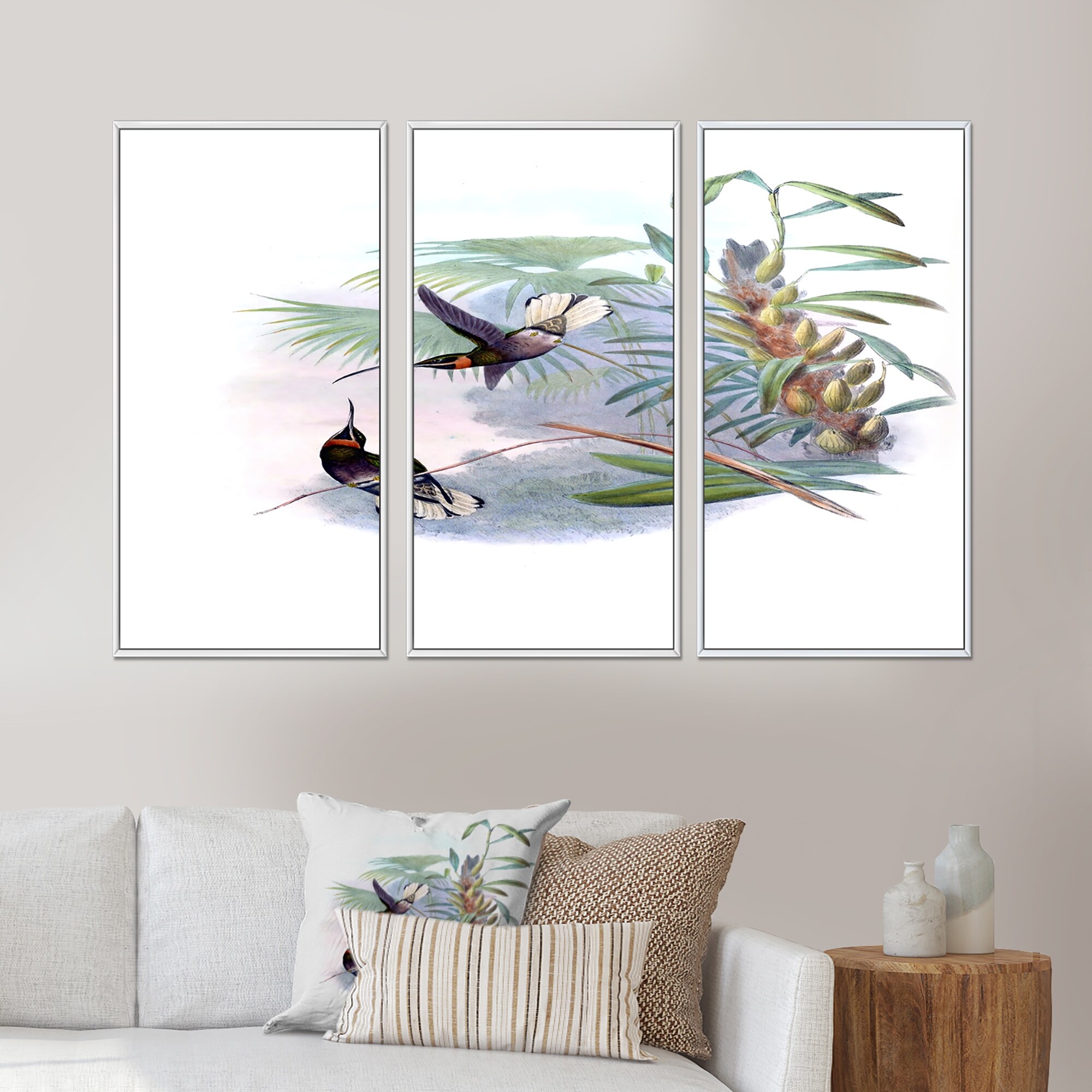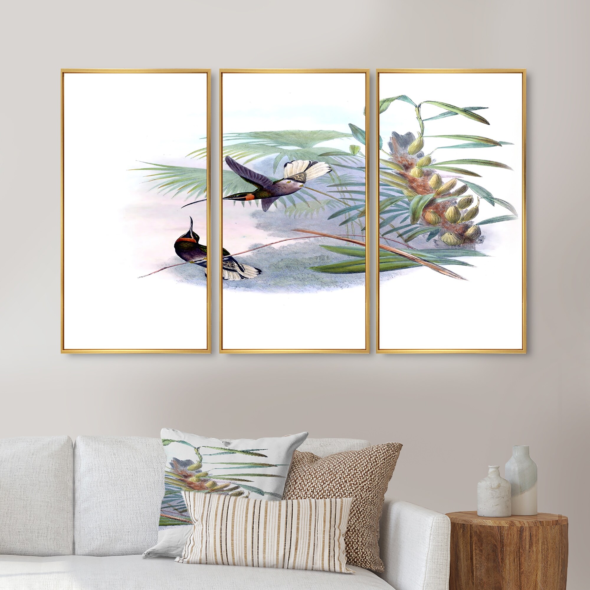 Designart "Vintage Hummingbird on A Branch" Traditional Framed Wall Decor Set of 3 - 4 Colors of Frames