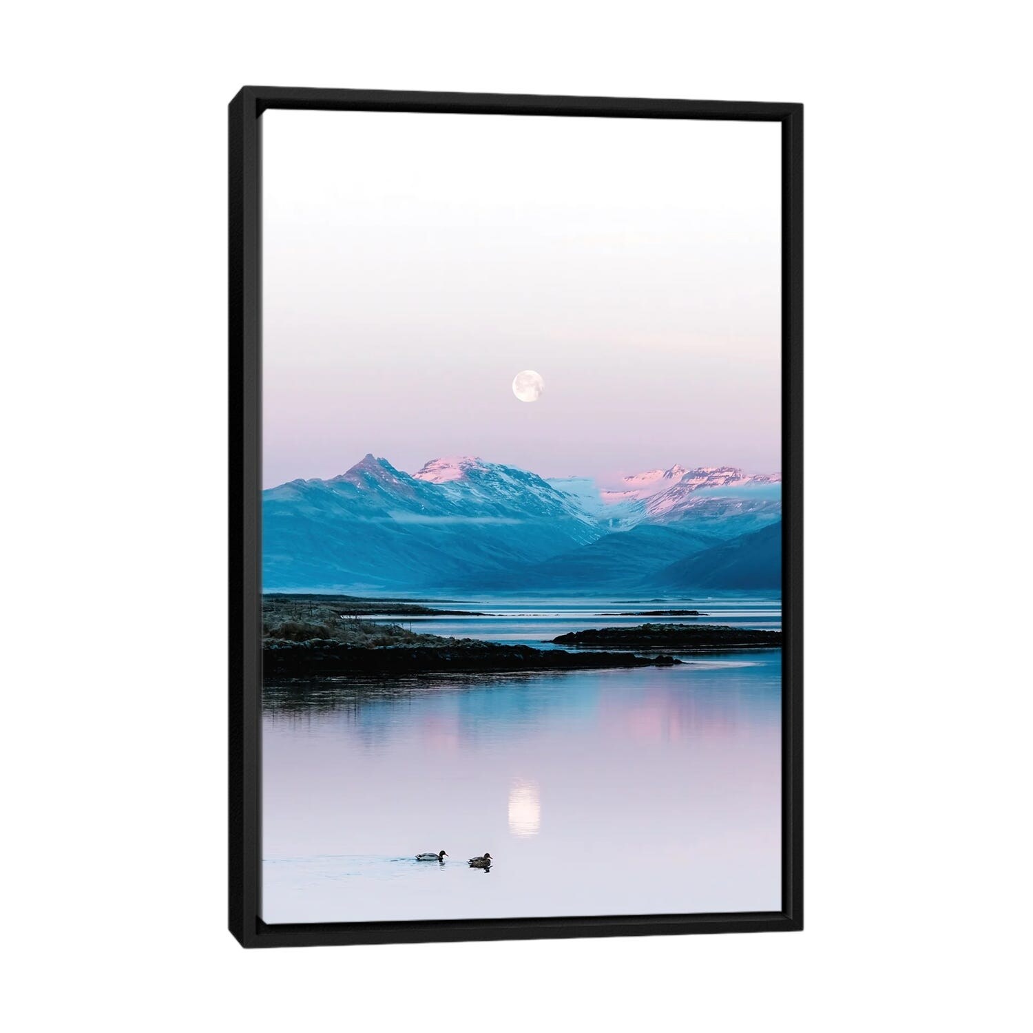 iCanvas "Ducks Swimming in Front of a Mountain And Moonrise Background in Iceland" by Michael Schauer Framed