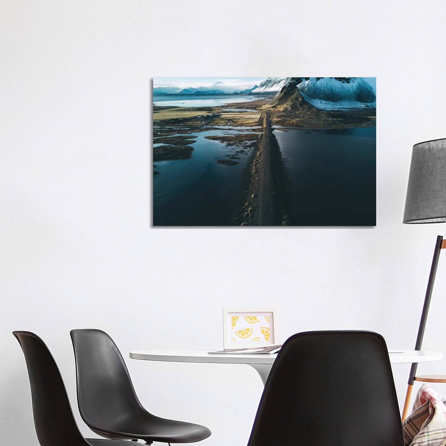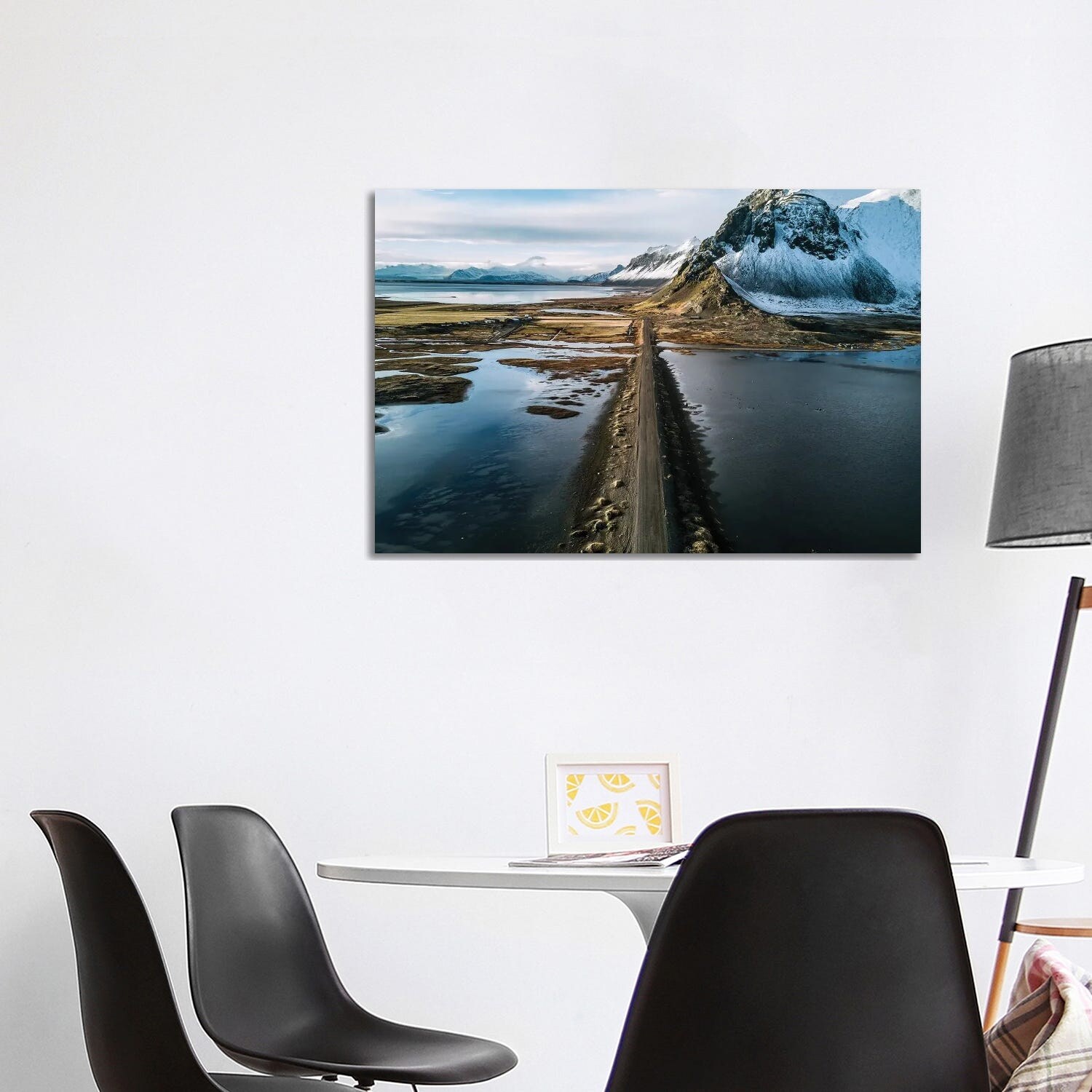 iCanvas "Stokksnes Mountain Peninsula on A Black Sand Beach Road During Sunset in Iceland" by Michael Schauer Canvas Print