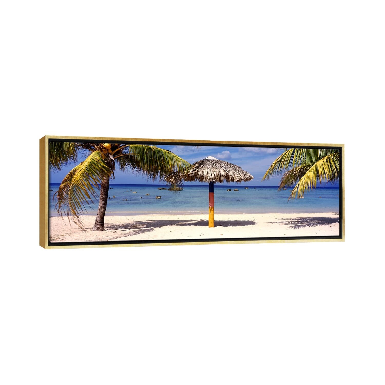iCanvas "Sunshade on the beach, La Boca, Cuba" by Panoramic Images Framed Canvas Print