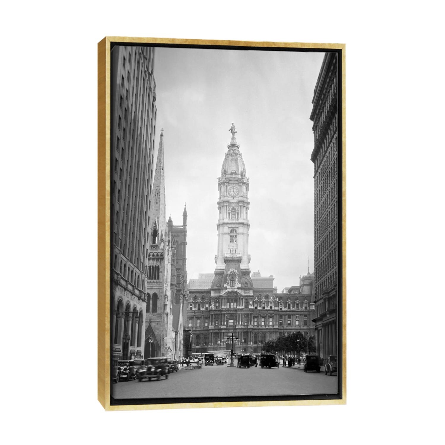 iCanvas "1930s-1936 View Down North Broad Street to the Philadelphia City Hall" by Vintage Images Framed Canvas Print