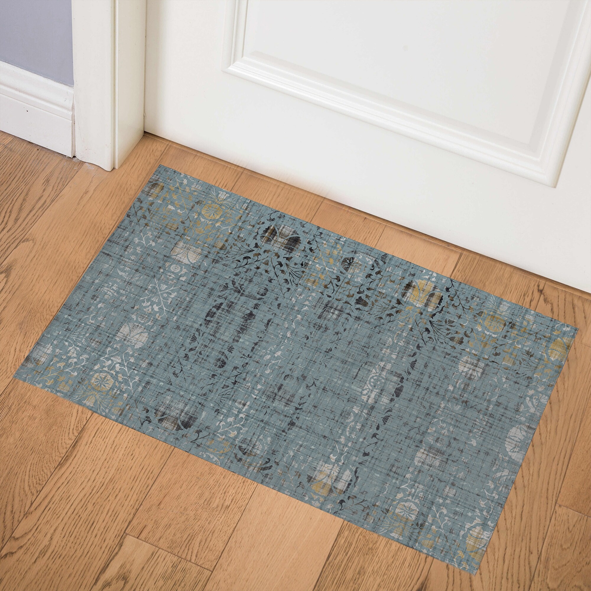 SUZANI DISTRESSED LIGHT BLUE Indoor Floor Mat By Kavka Designs