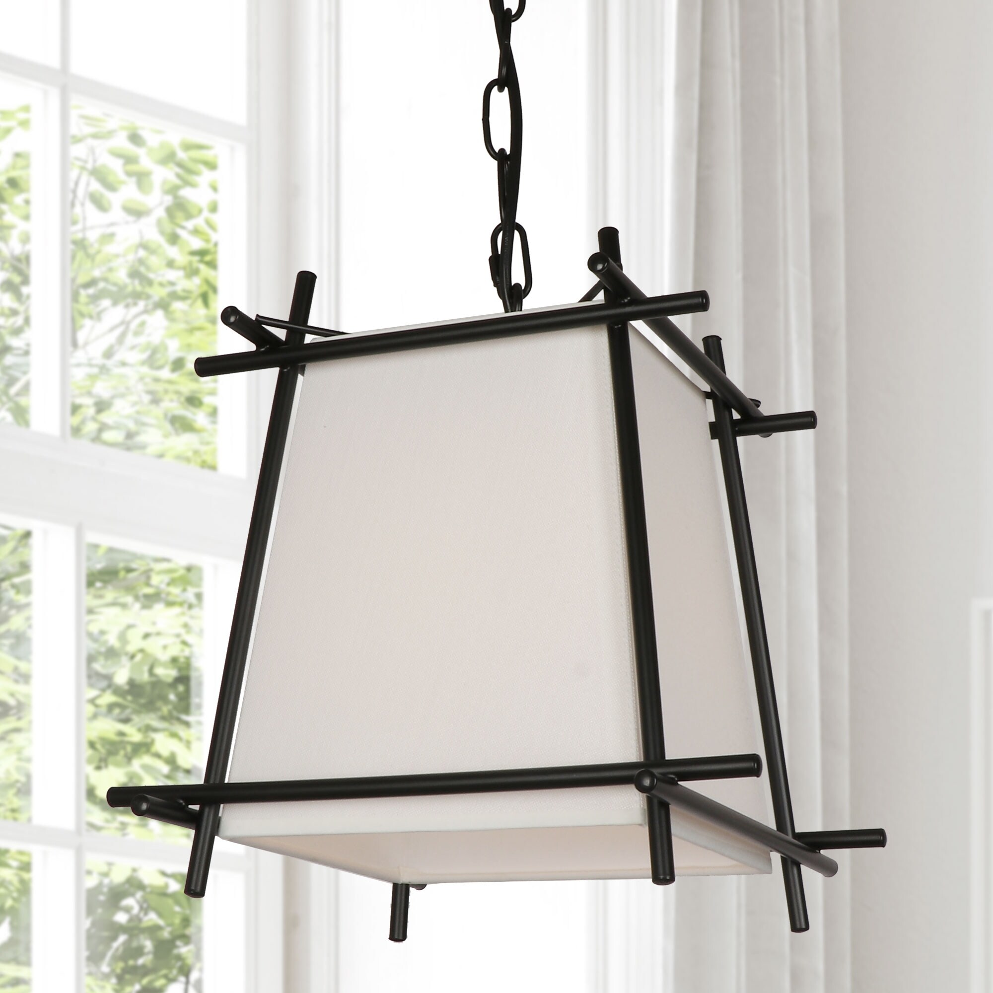 Trapezoidal Pendant Light with Fabric Shade, Modern Indoor Ceiling Hanging Lighting with Adjustable Hanging Chain