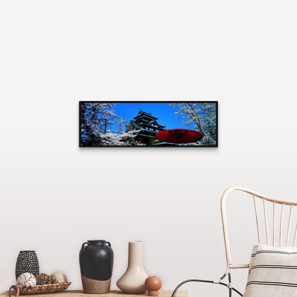 Easy Art Prints Panoramic Images's 'Matsue Castle Cherry Blossoms Shimane Japan' Premium Canvas Art