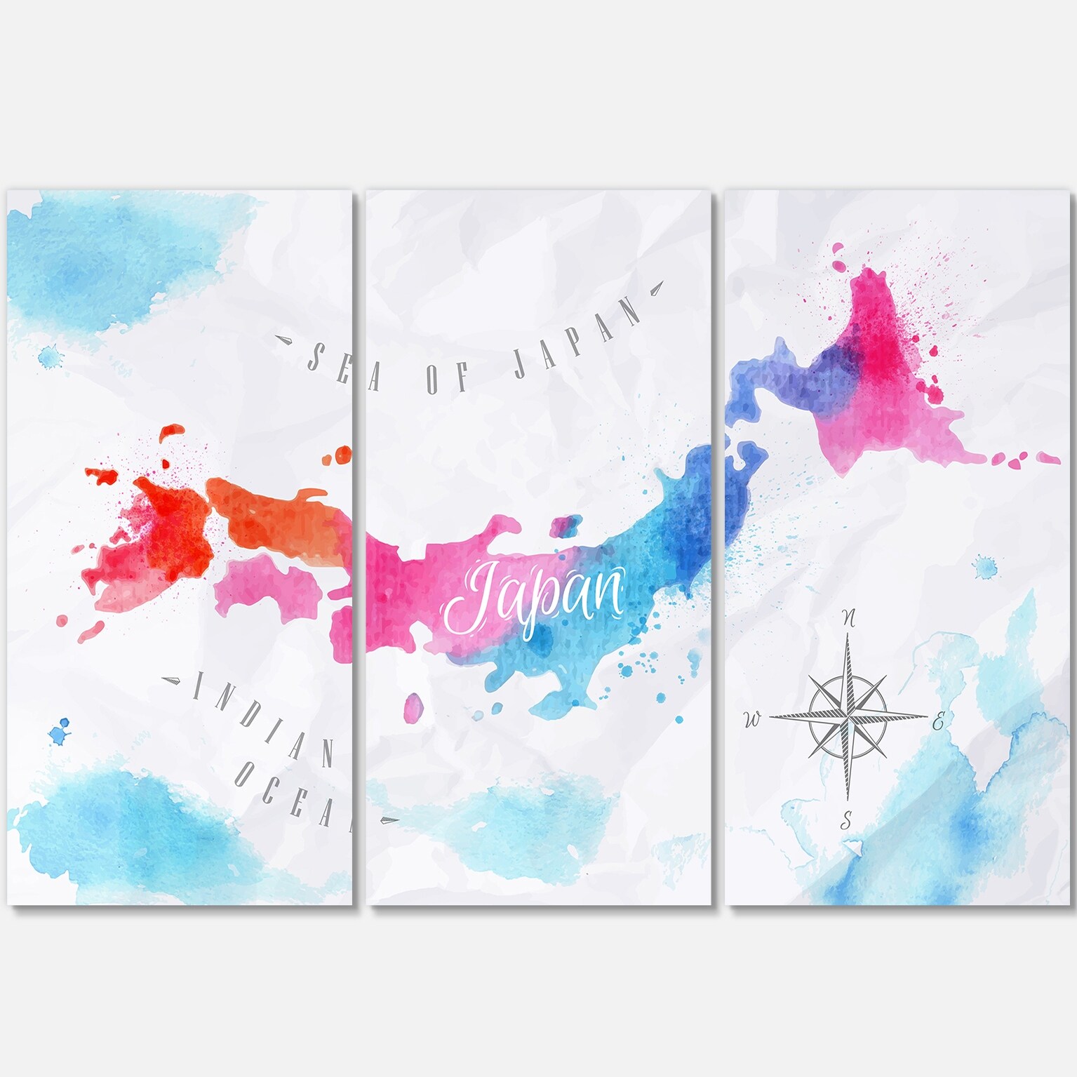 Designart 'Japan Map Watercolor' Metal Wall Art