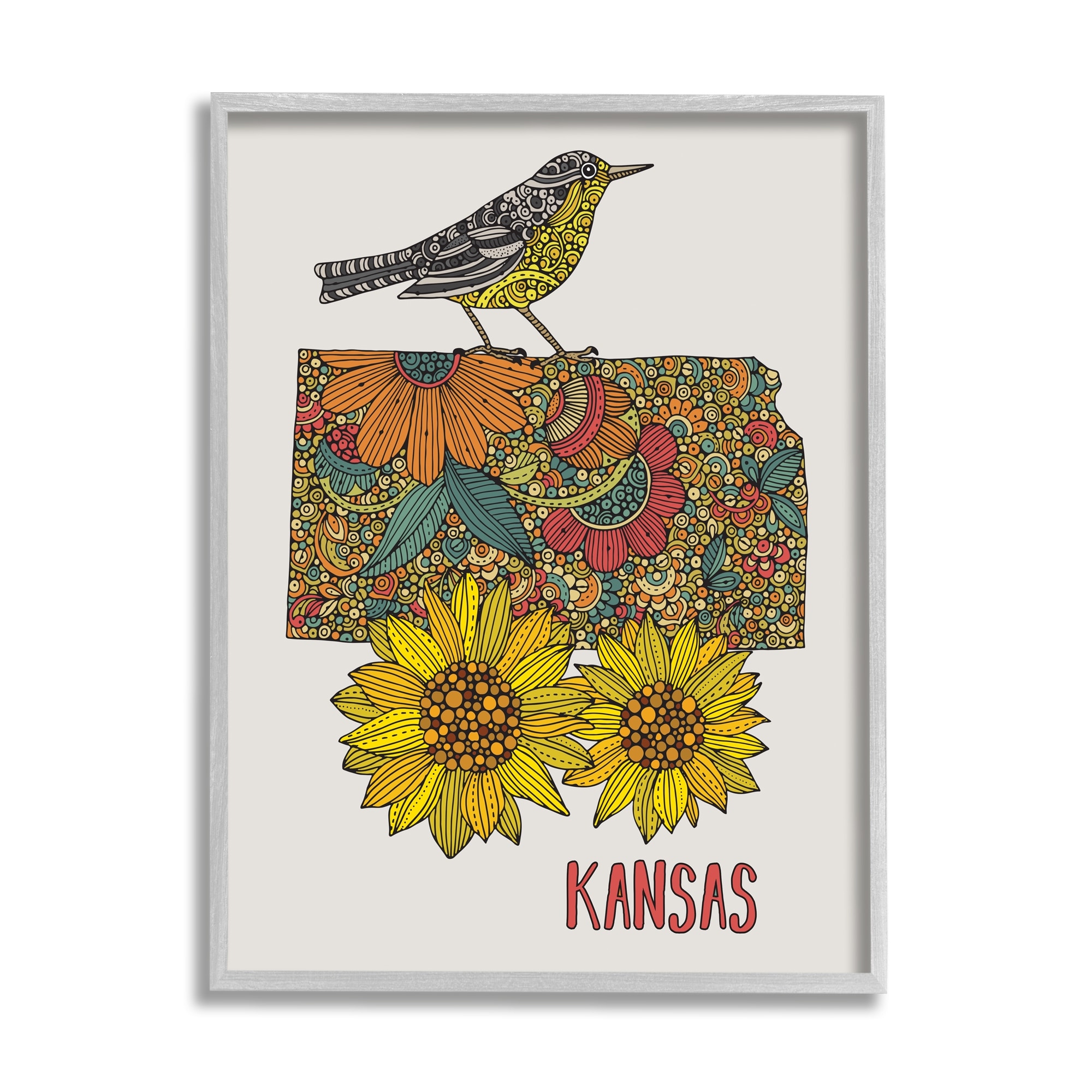 Stupell Kansas Sunflower Blooms State Bird Detailed Pattern Framed Wall Art, Design by Valentina Harper