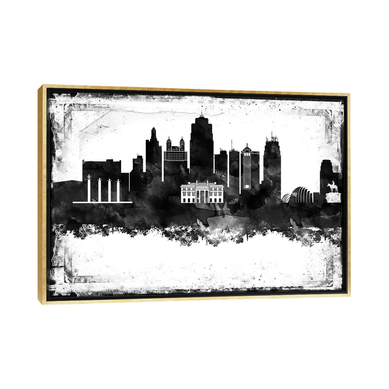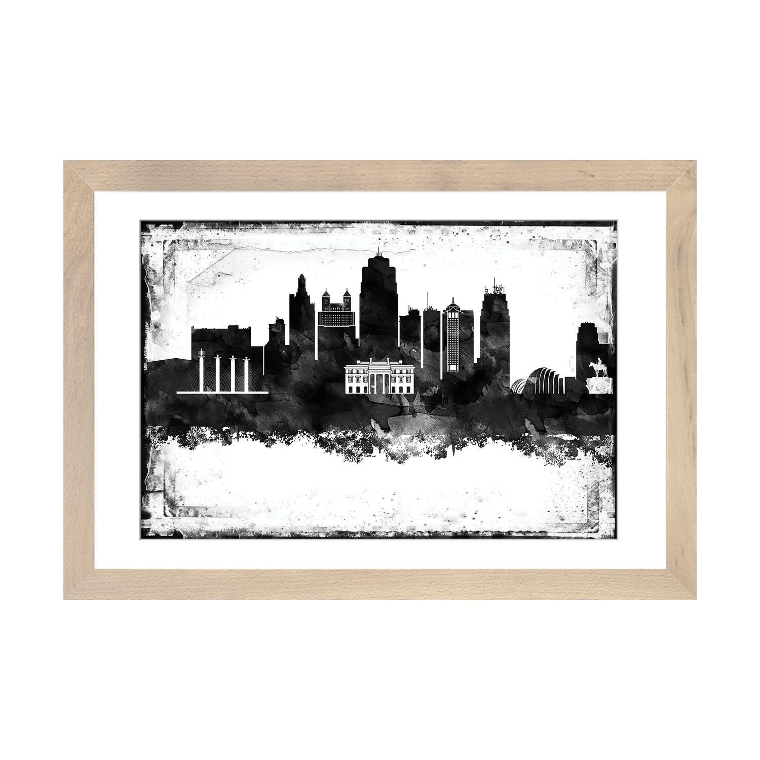 iCanvas "Kansas City Black And White Framed Skylines" by WallDecorAddict