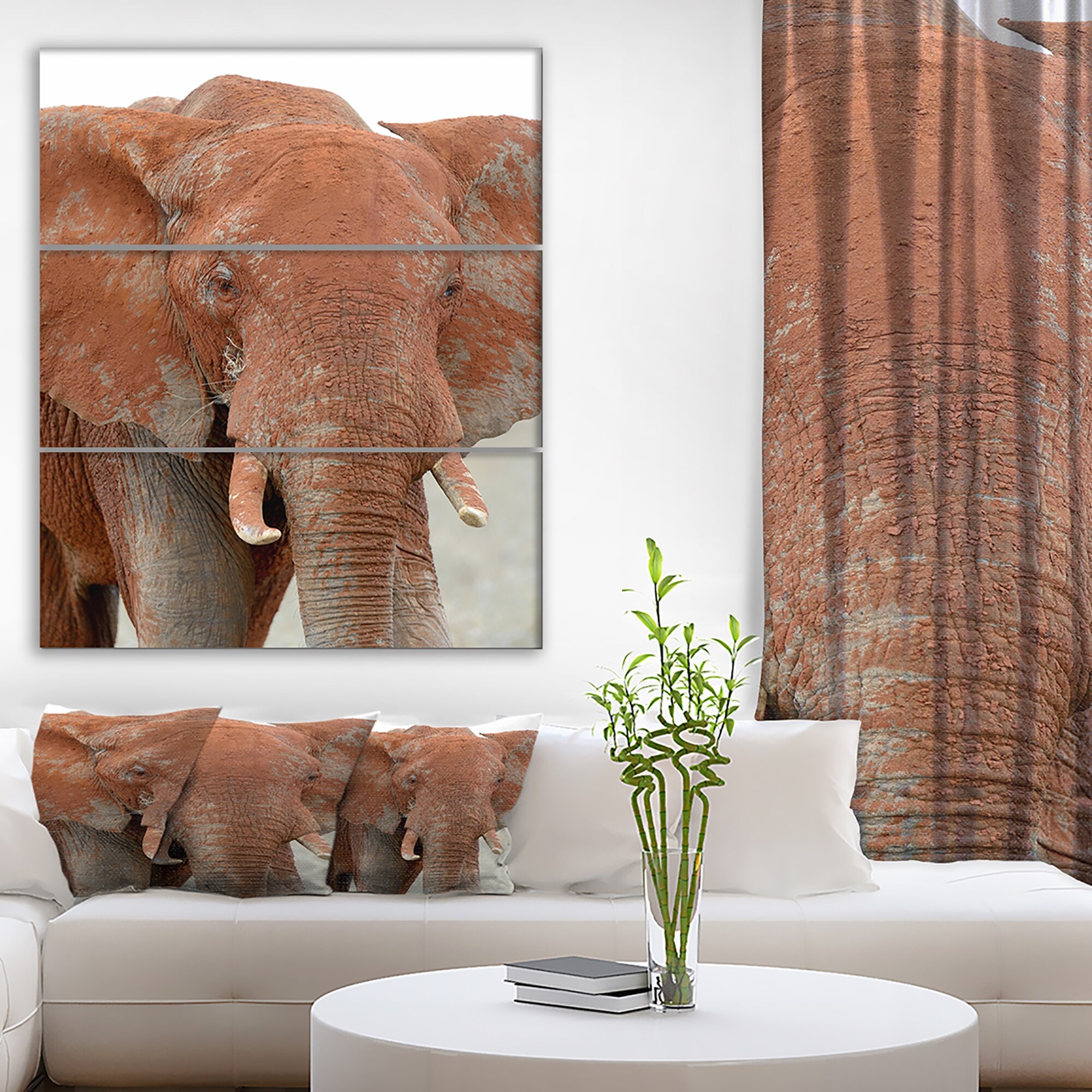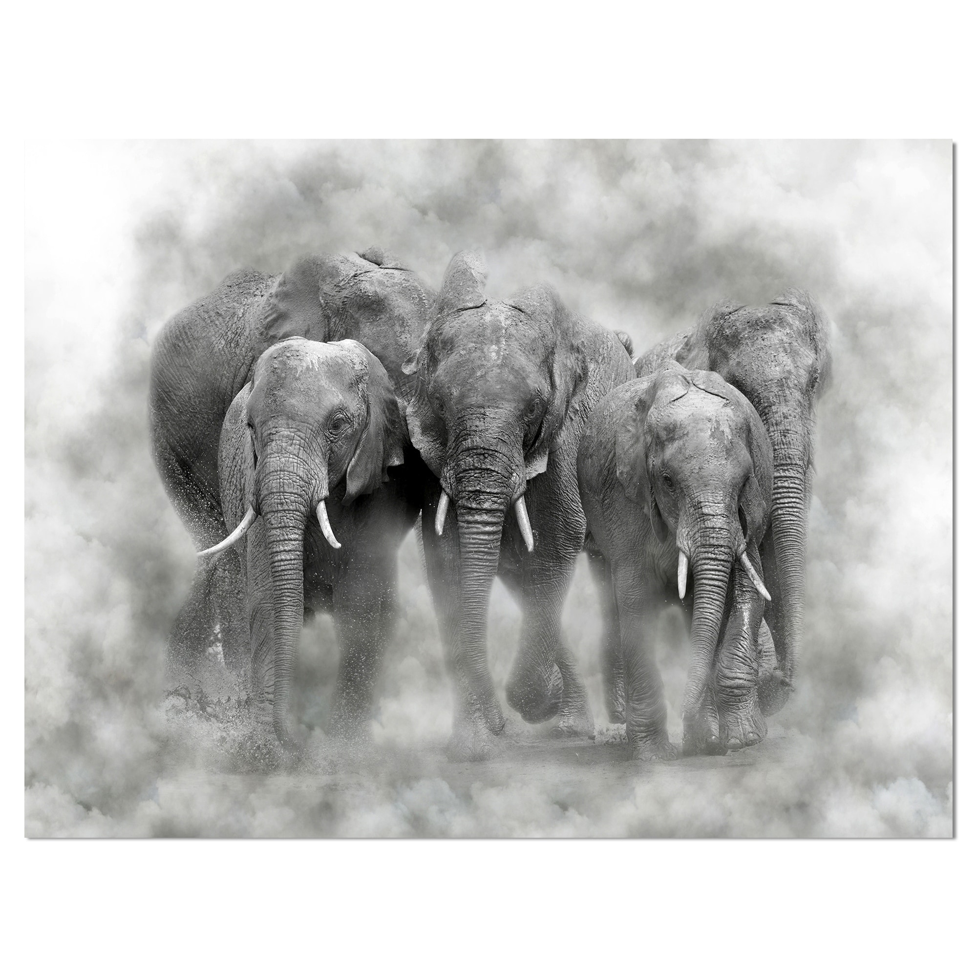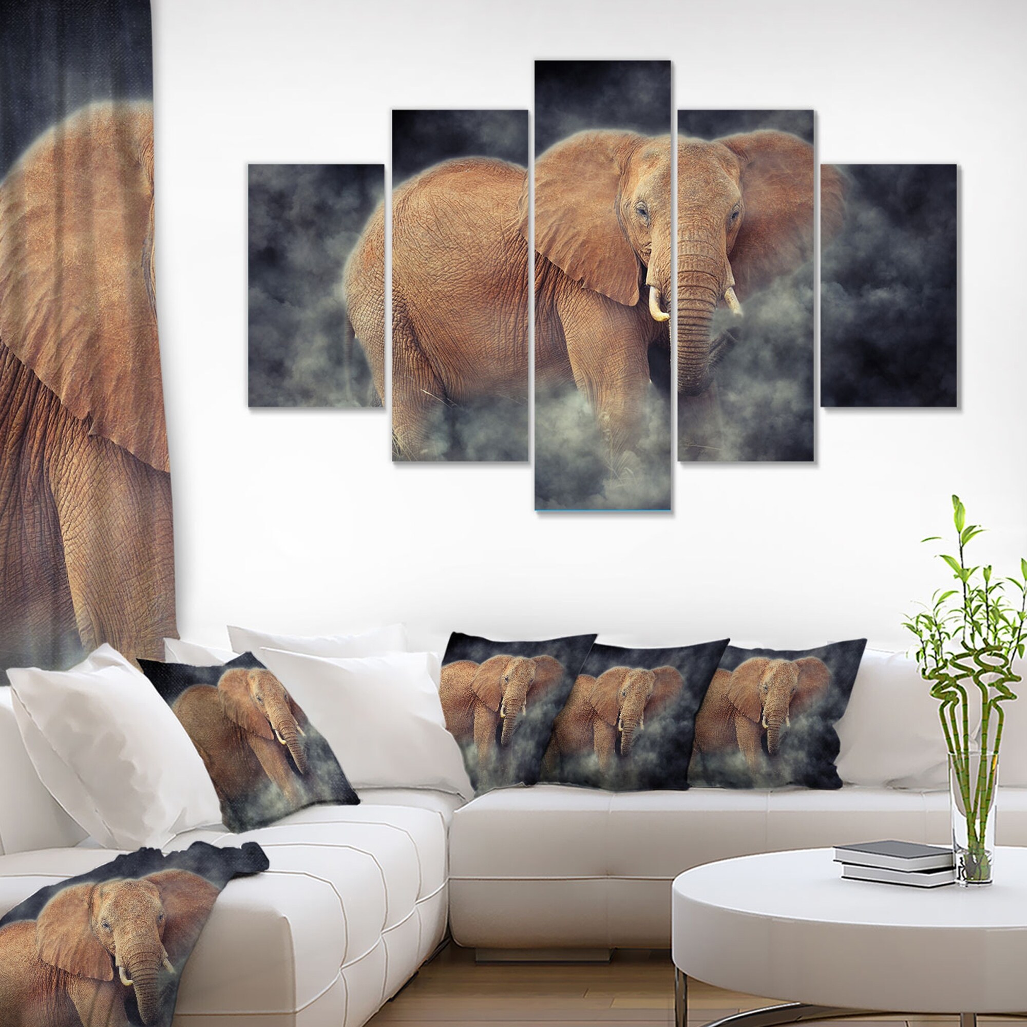 Designart "Kenya National Park Elephant in smoke" Animals Photography on Wrapped Canvas set