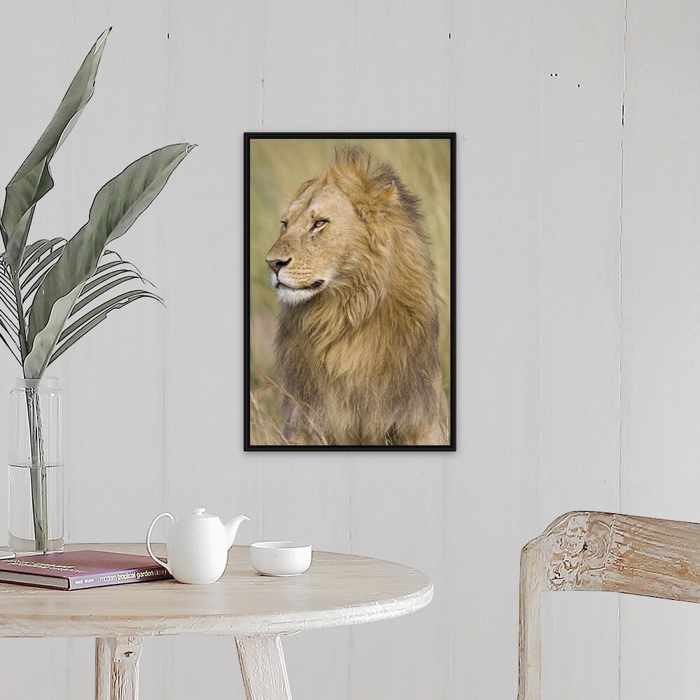 "Close-up of a Lion (Panthera Leo), Masai Mara National Reserve, Kenya" Black Float Frame Canvas Art