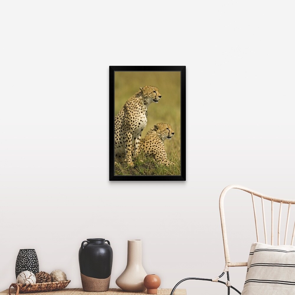 "Close-up of two Cheetahs (Acinonyx Jubatus), Masai Mara National Reserve, Kenya" Black Framed Print