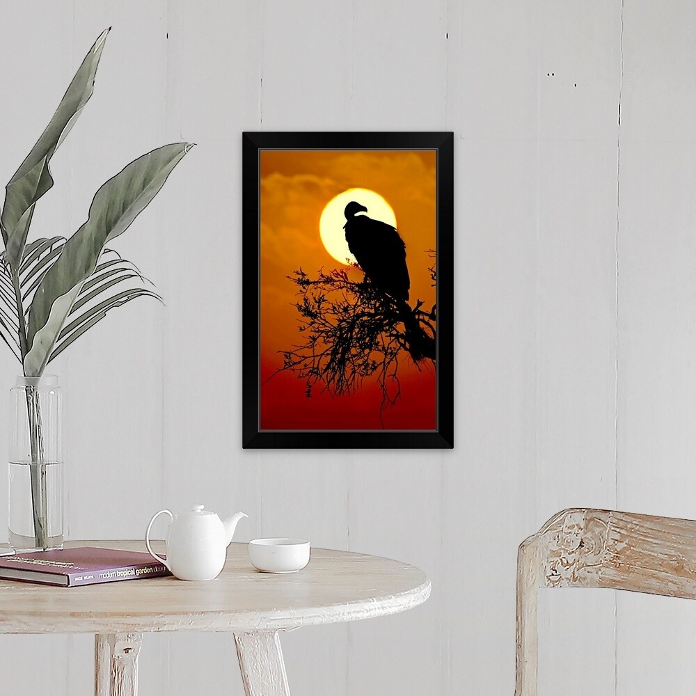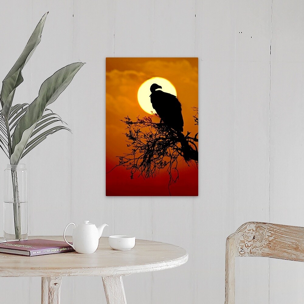 "Silhouette of a Vulture perching on a tree, Masai Mara National Reserve, Kenya" Canvas Wall Art