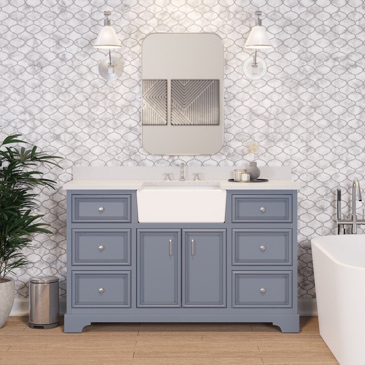 KitchenBathCollection Zelda 60" Single Farmhouse Vanity with Quartz Top