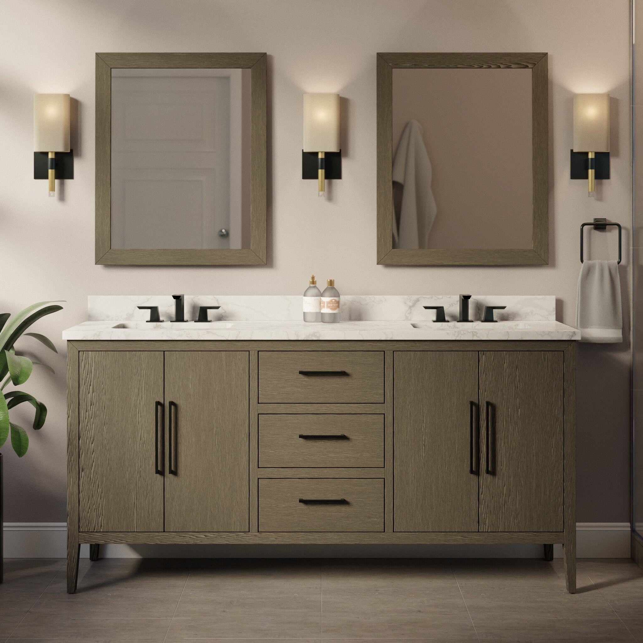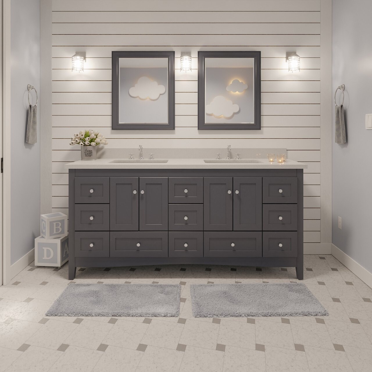 KitchenBathCollection Abbey 72" Double Bathroom Vanity with Quartz Top