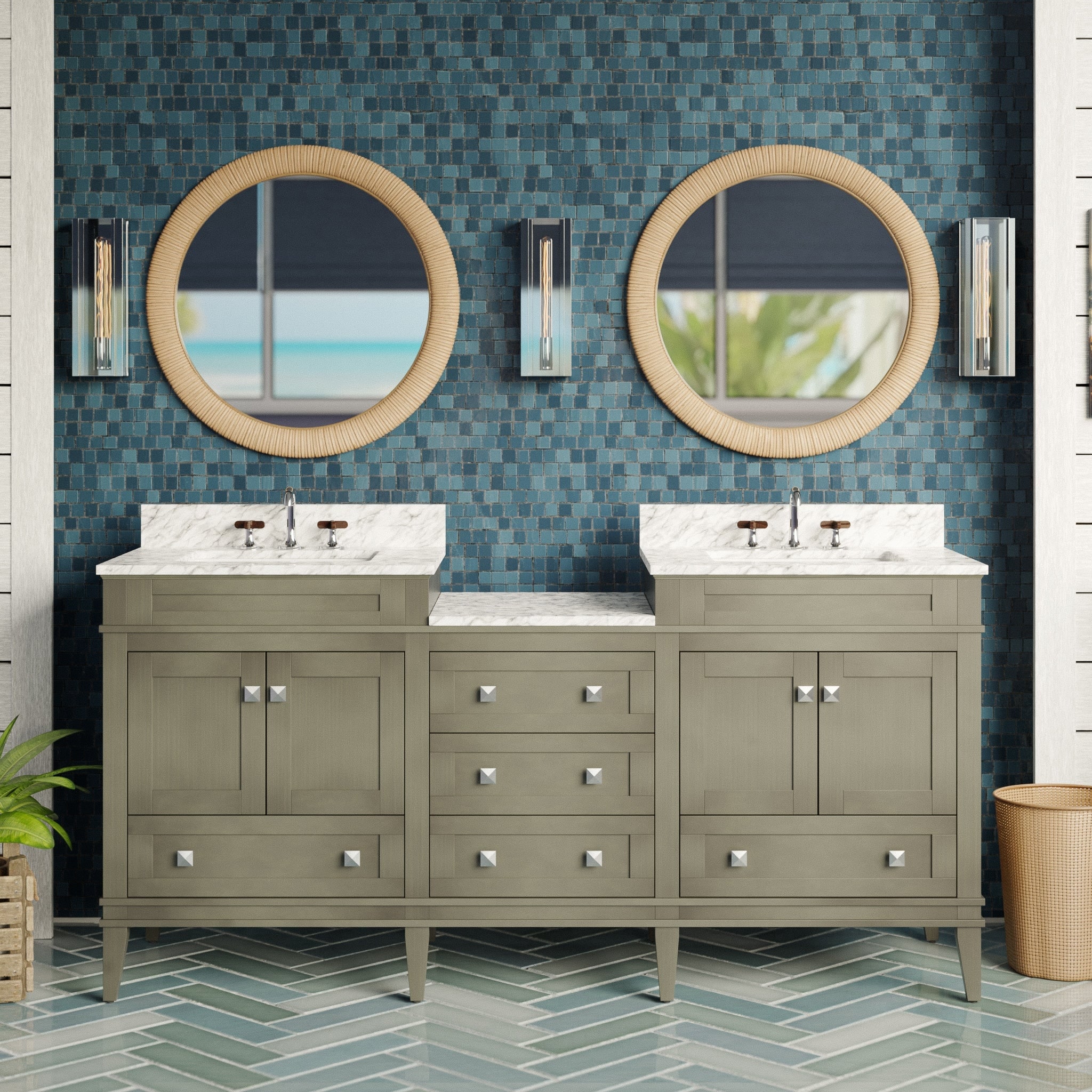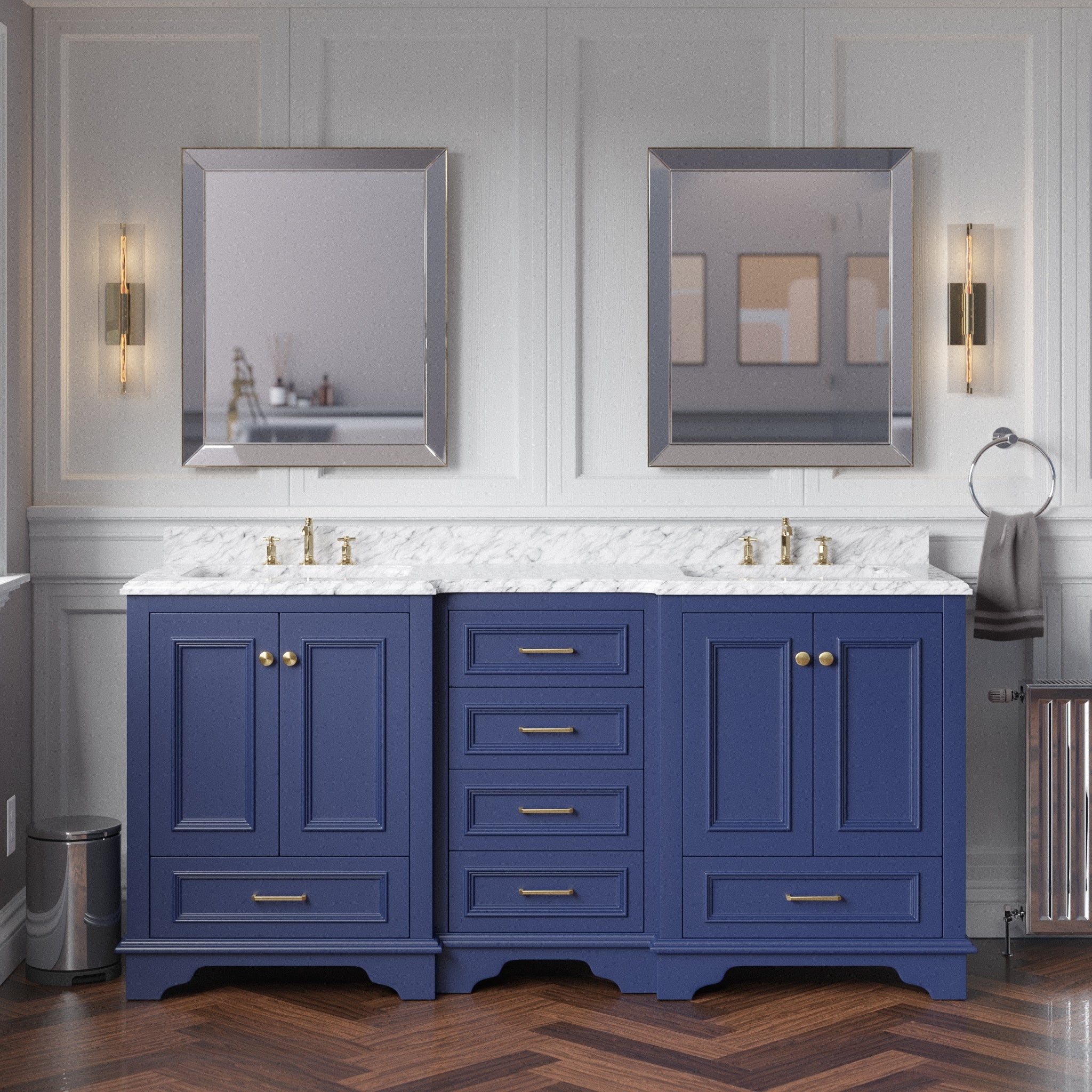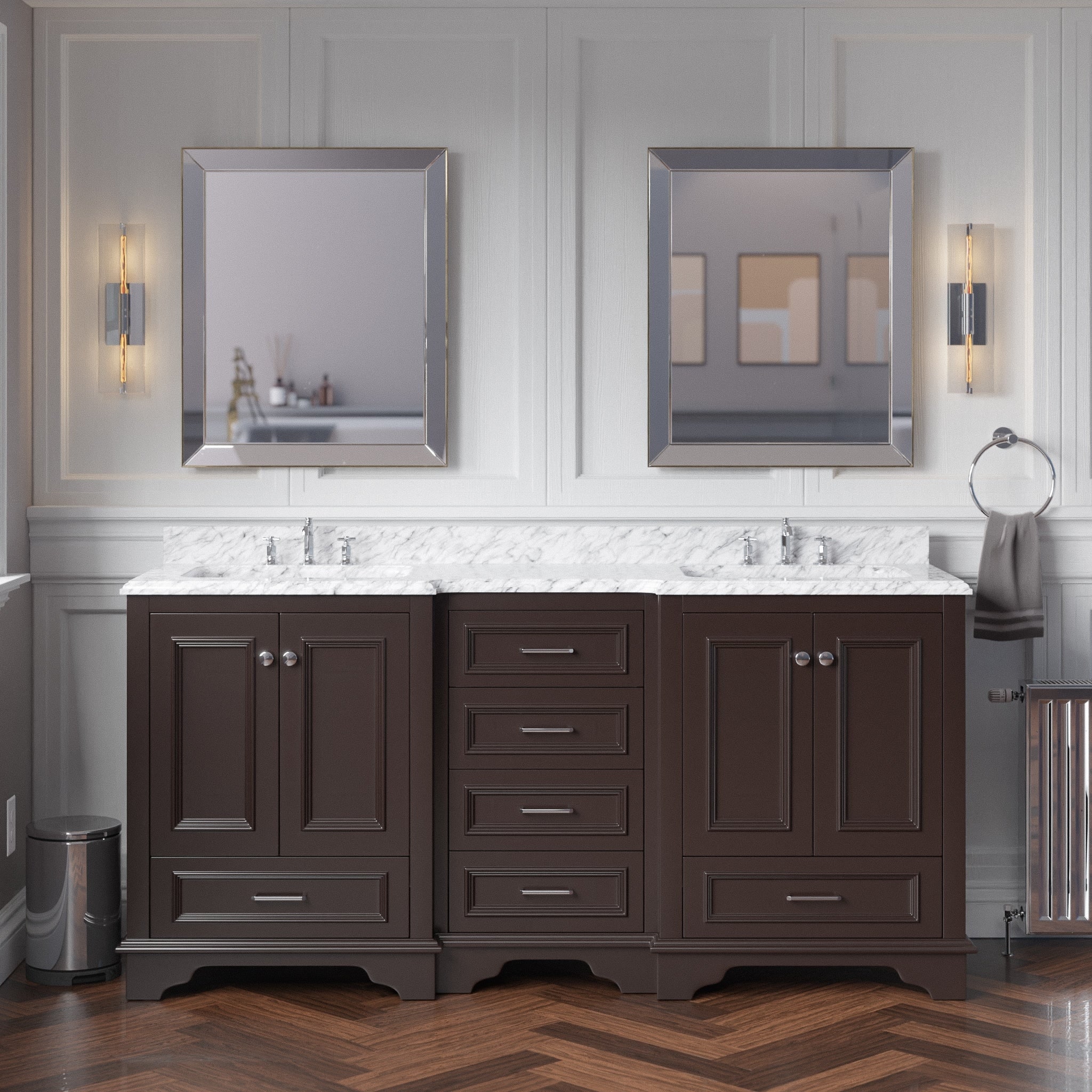 KitchenBathCollection Avery 72" Double Bathroom Vanity with Carrara Marble Top