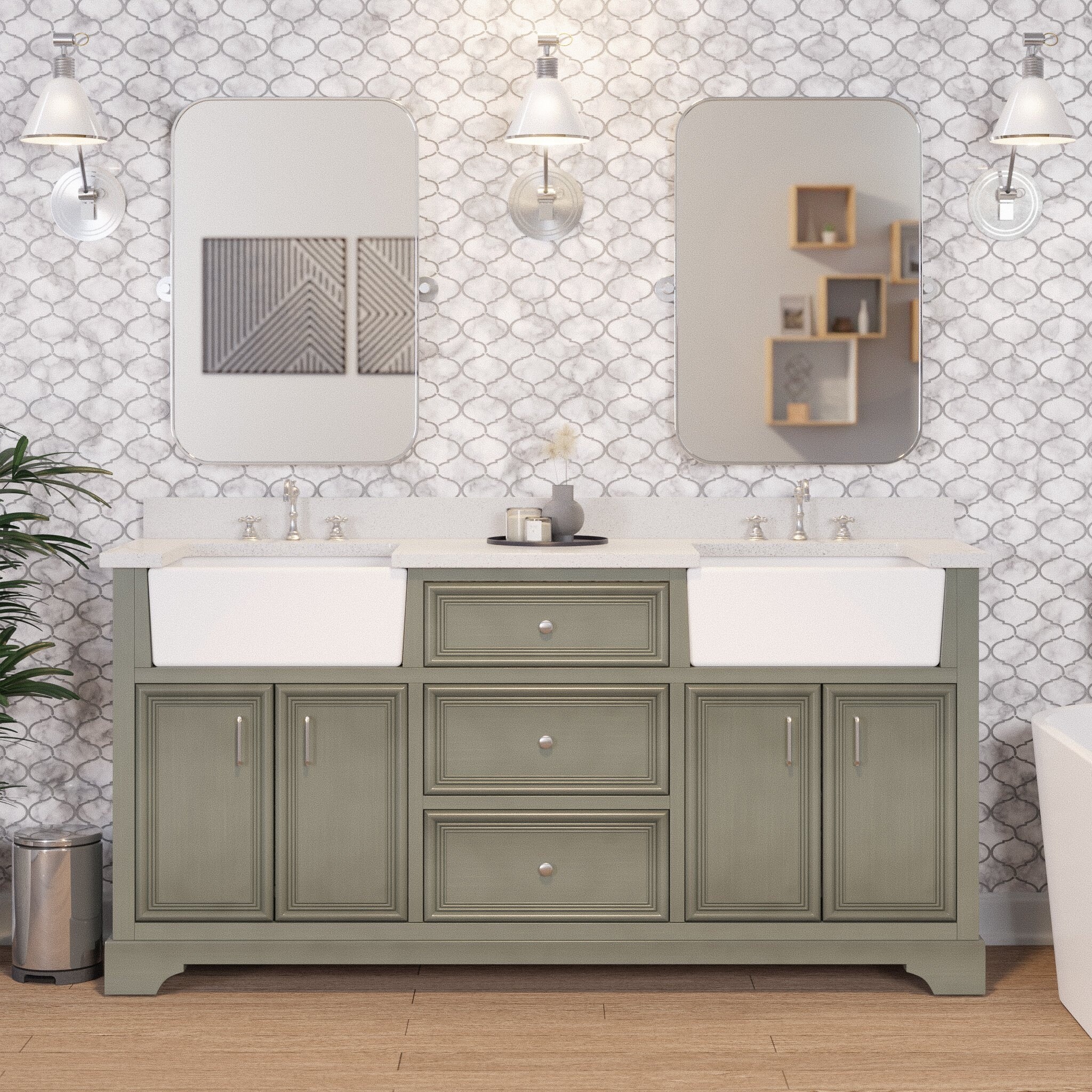 KitchenBathCollection Zelda 72" Double Farmhouse Vanity with Quartz Top
