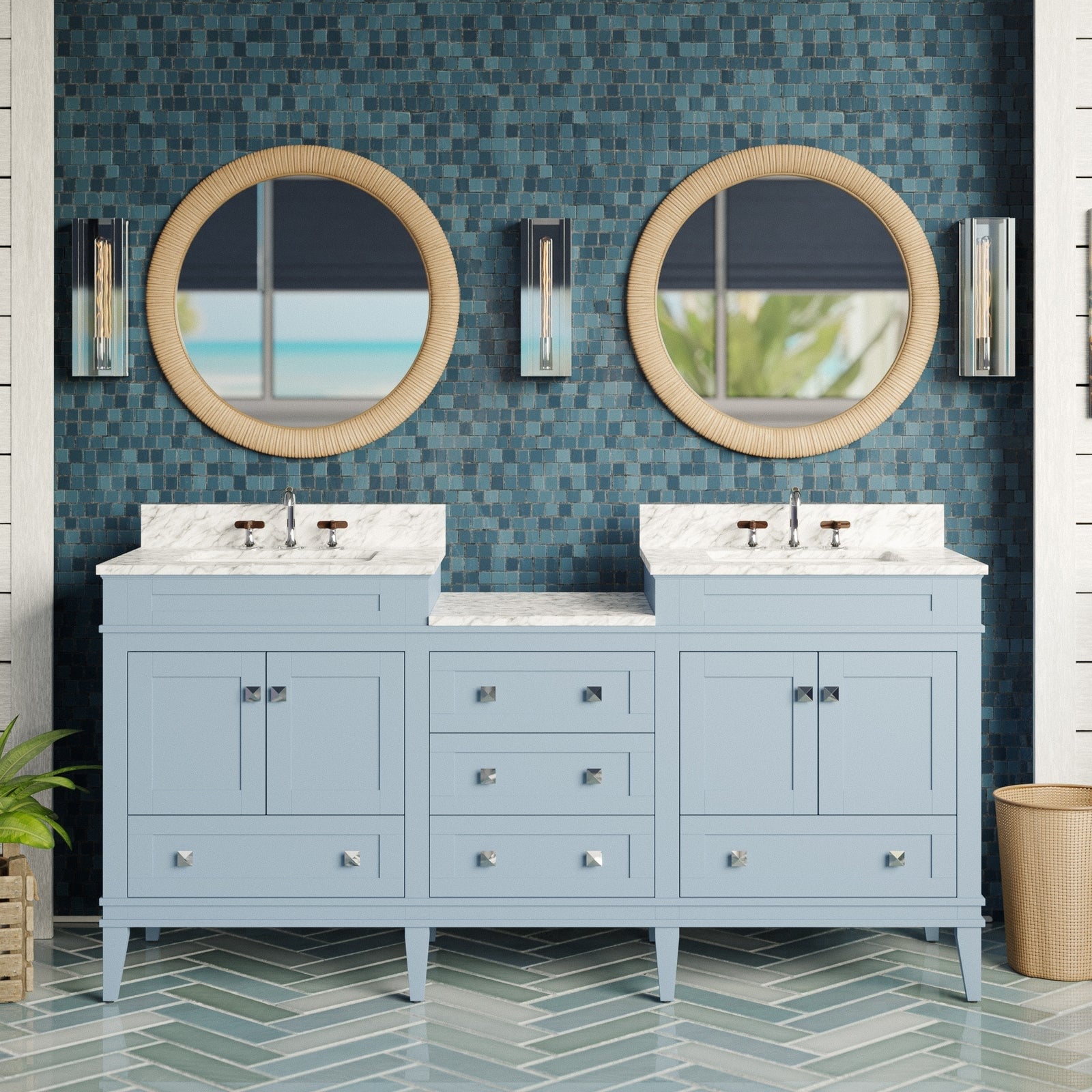 KitchenBathCollection Eleanor 72" Double Bathroom Vanity with Carrara Marble Top