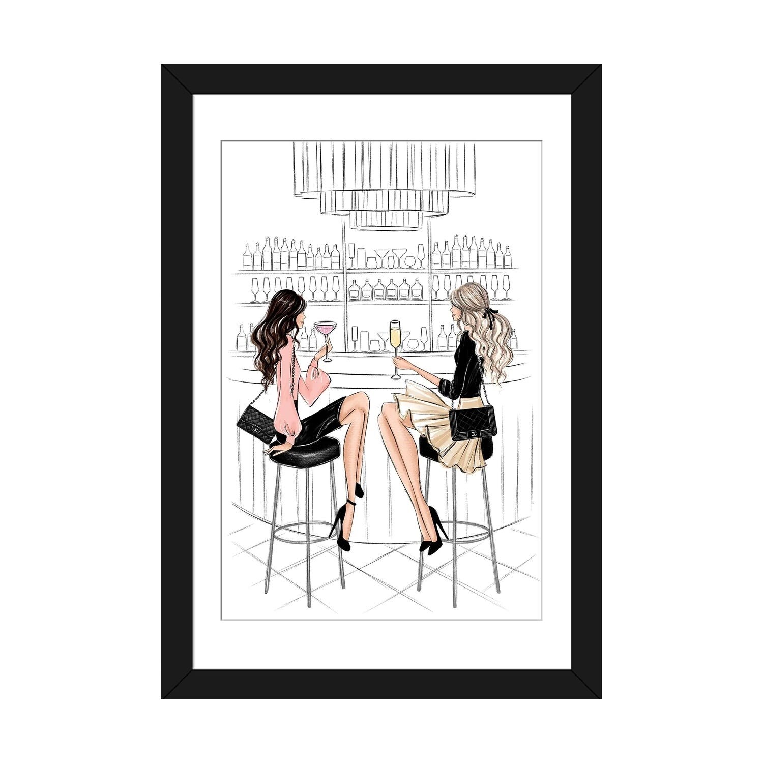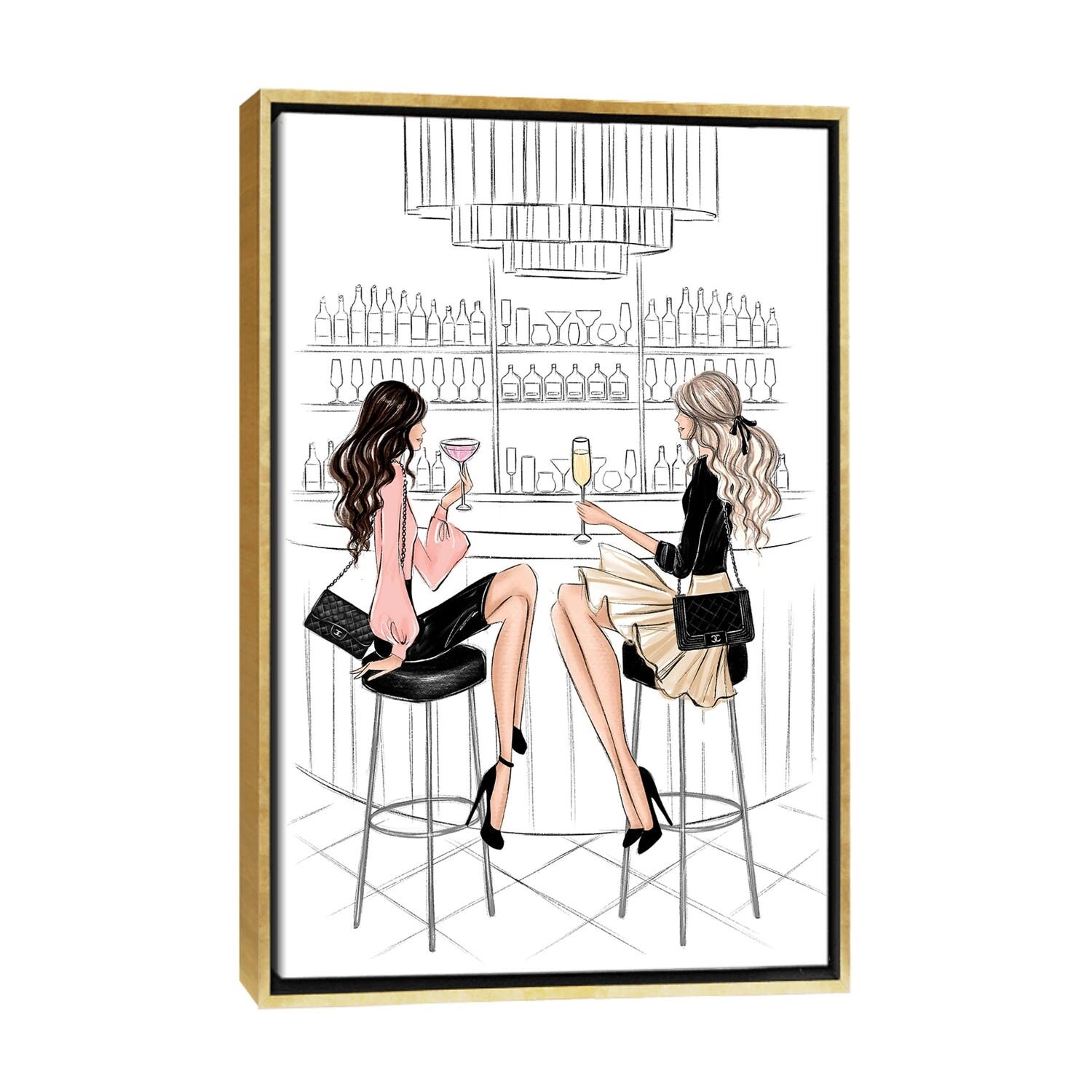 iCanvas "Girls In the Bar I" by LaLana Arts Framed Canvas Print