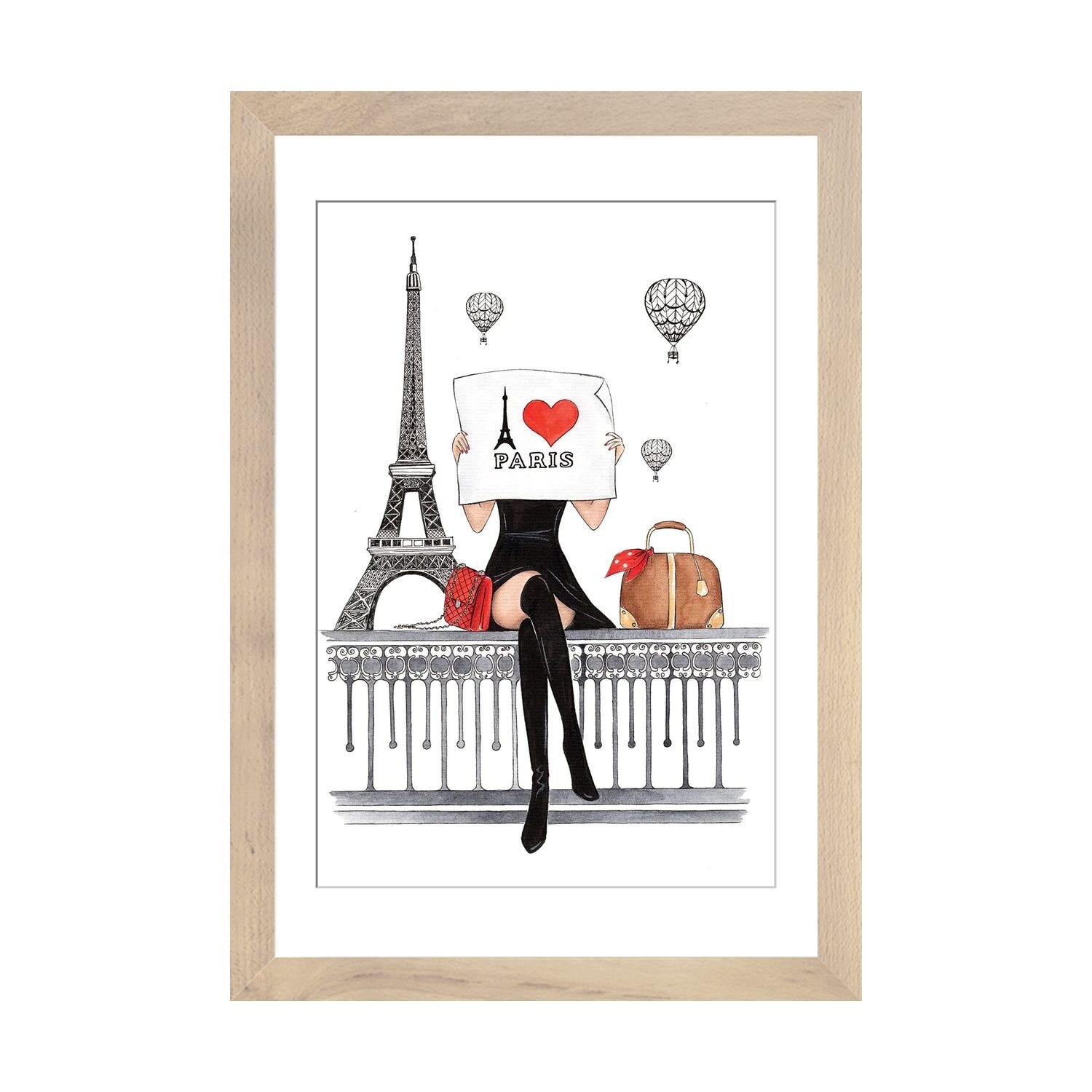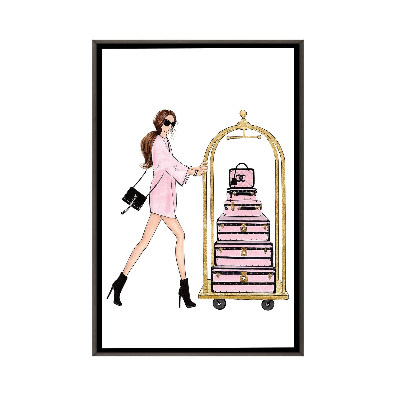 iCanvas "Girl With Suitcases" by LaLana Arts Framed