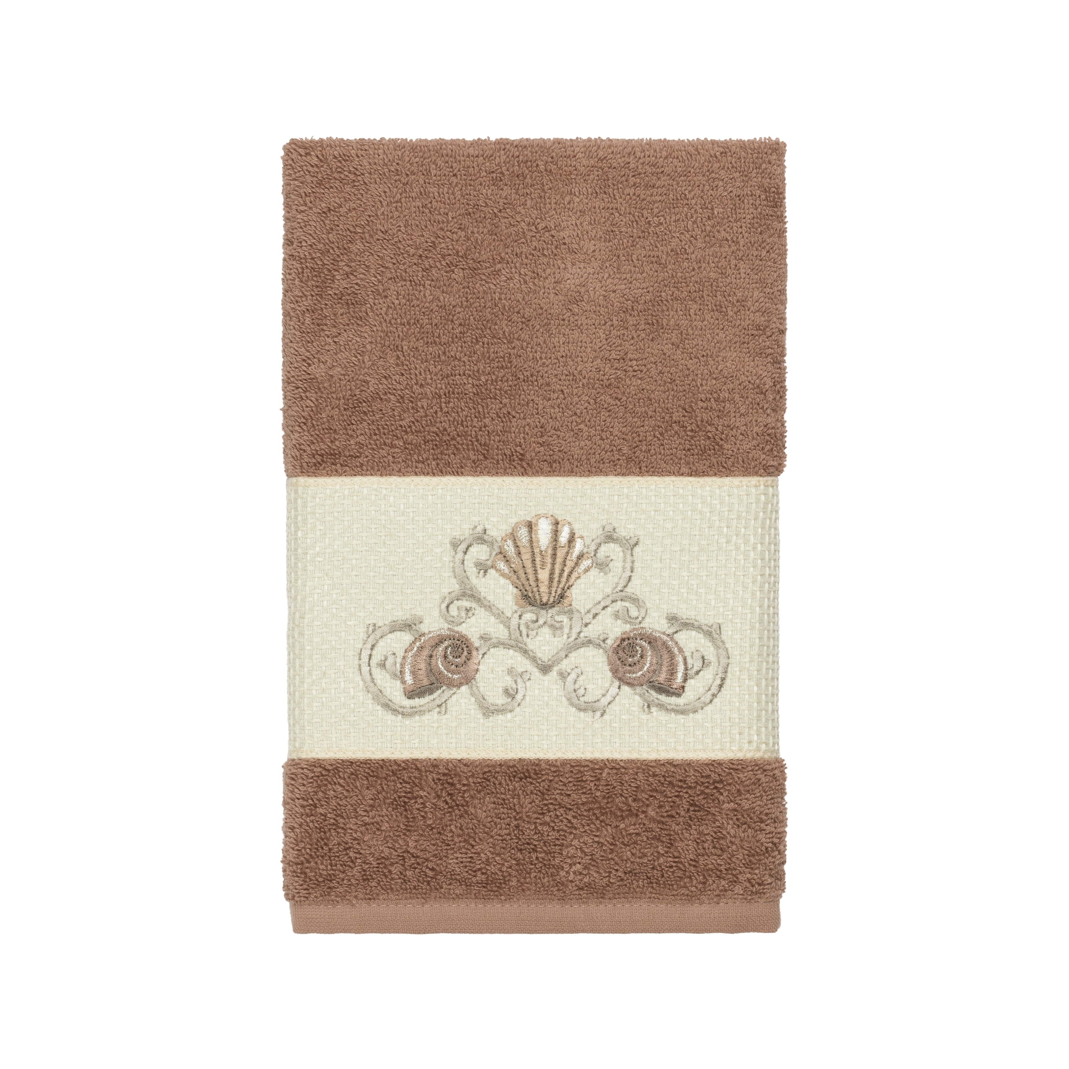 Authentic Hotel and Spa Turkish Cotton Shells Embroidered Latte Brown Hand Towel