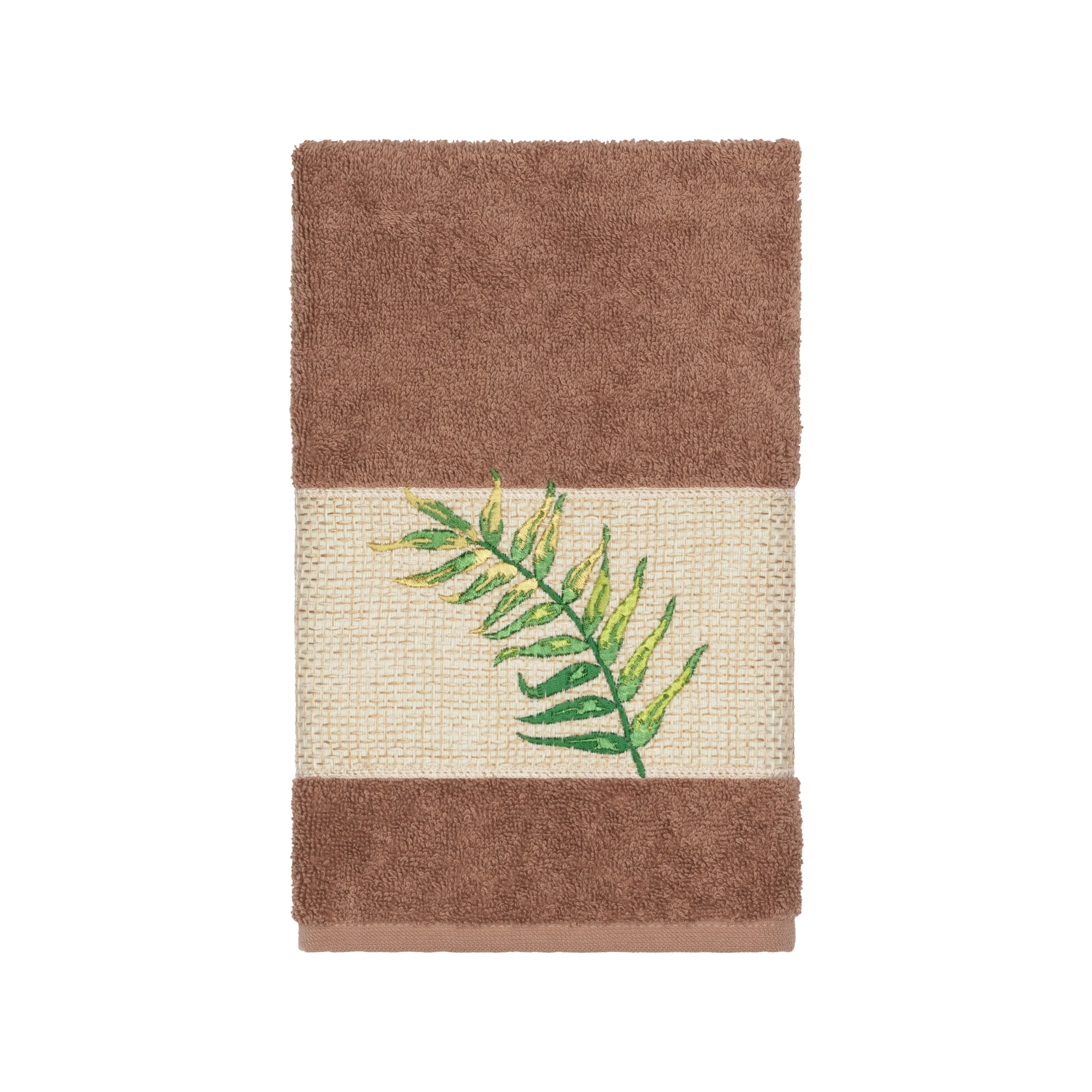 Authentic Hotel and Spa Turkish Cotton Palm Fronds Embroidered Latte Brown Hand Towel