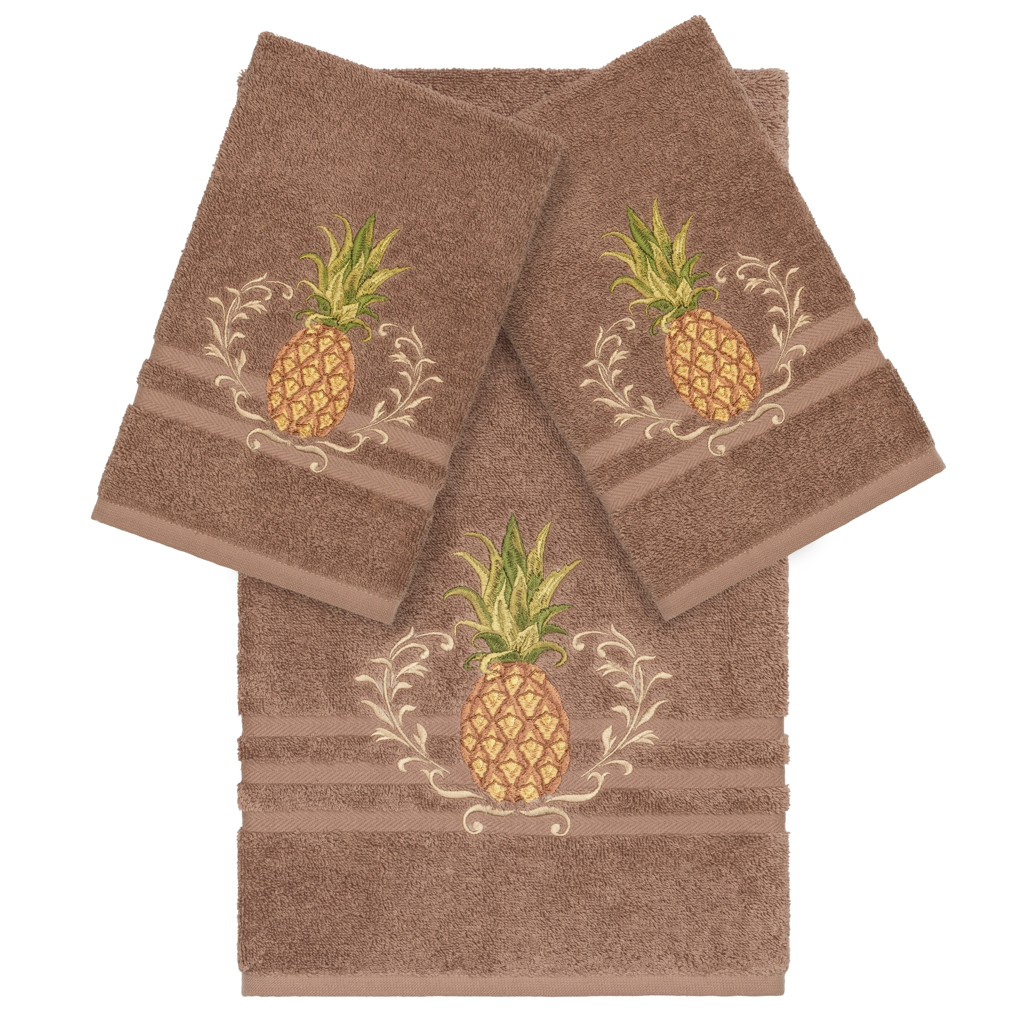 Authentic Hotel and Spa Turkish Cotton Pineapple Embroidered Latte Brown 3-piece Towel Set