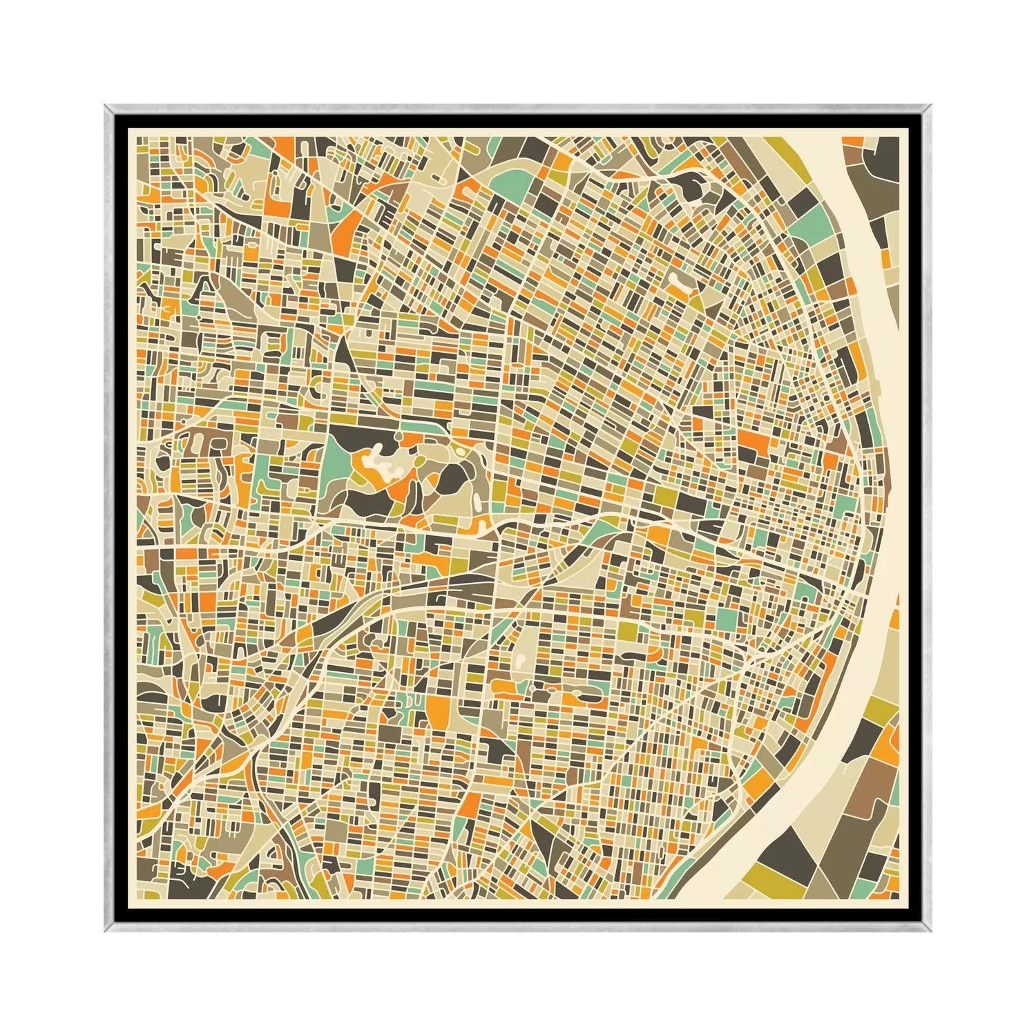 iCanvas "Abstract City Map of St. Louis" by Jazzberry Blue Framed