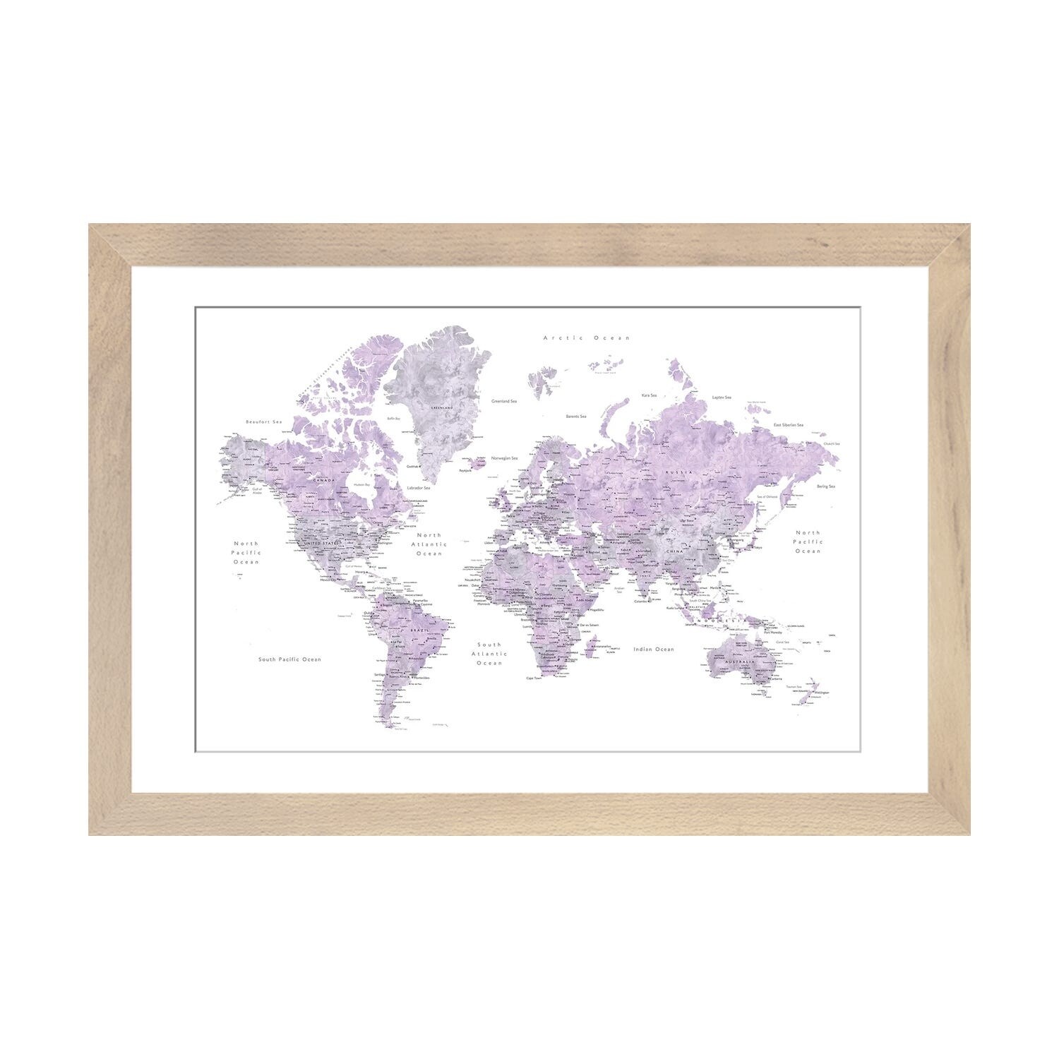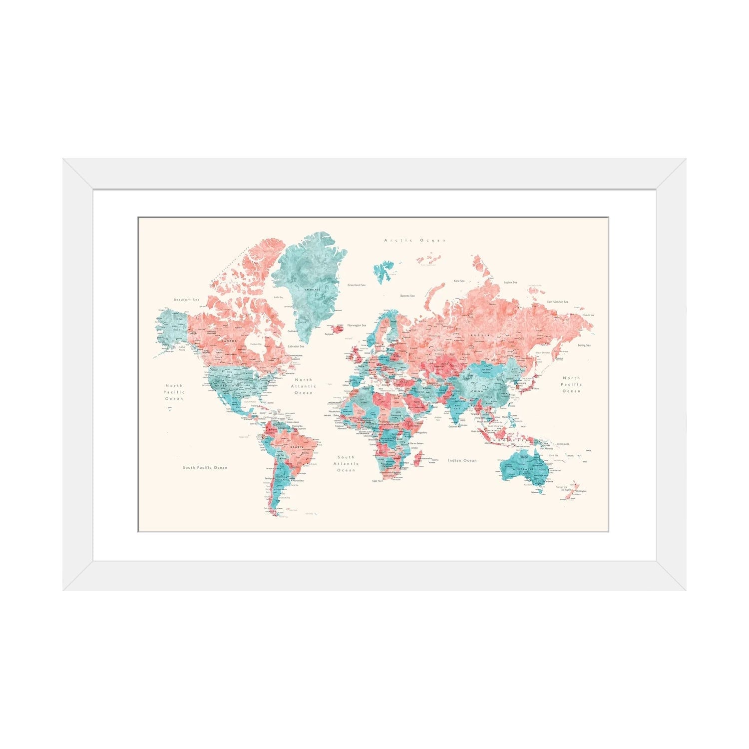 iCanvas "World Map With Main Cities Tanya" by blursbyai