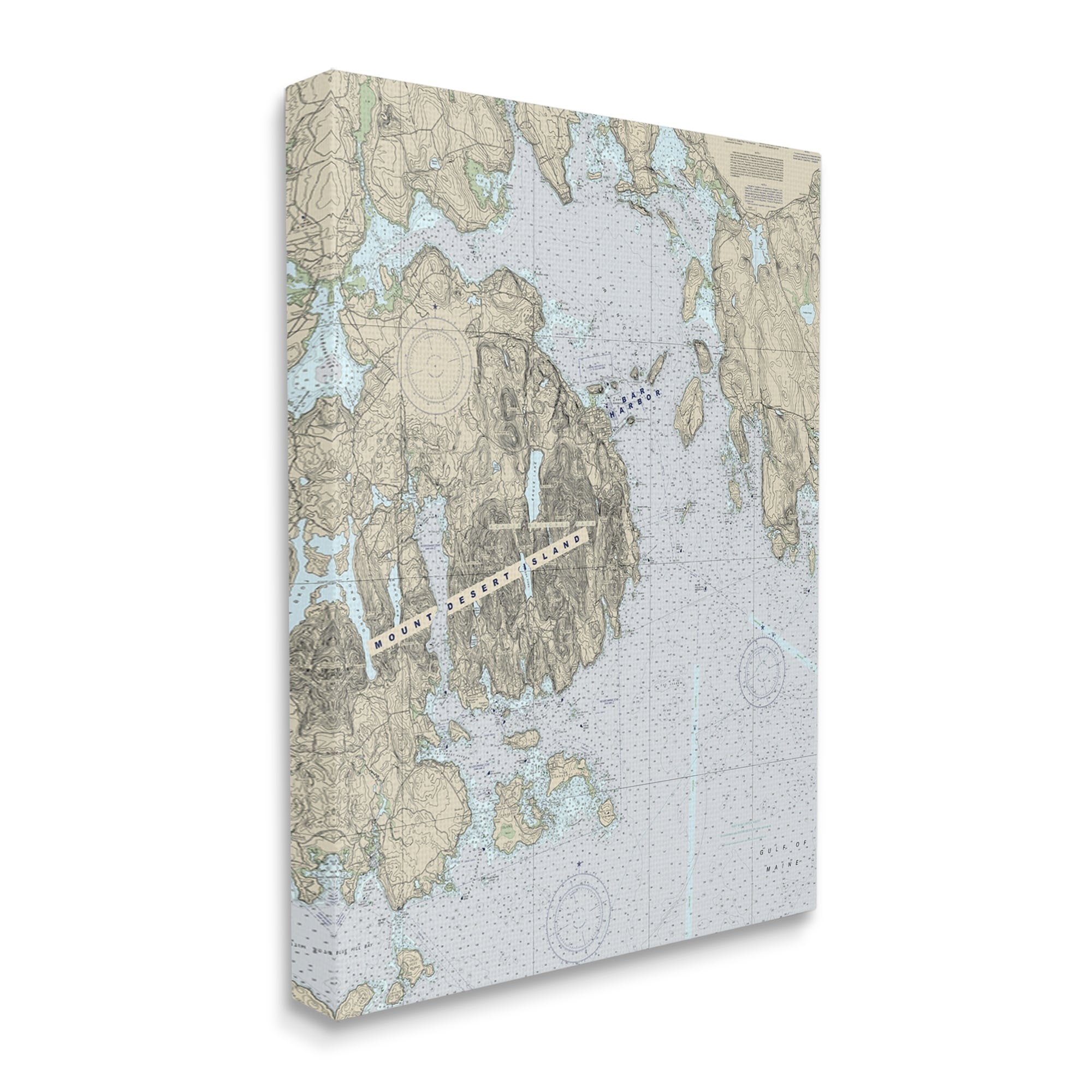 Stupell Industries Mount Desert Island Maine Coastal Map Traditional Cartography Canvas Wall Art - Grey