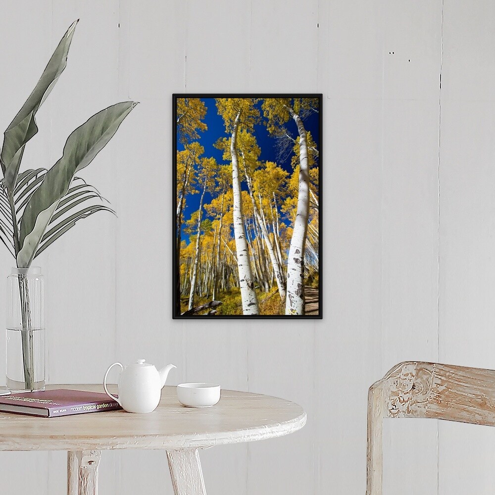 "Aspen trees in a forest, Maroon Bells, Maroon Creek Valley, Aspen, Colorado" Black Float Frame Canvas Art