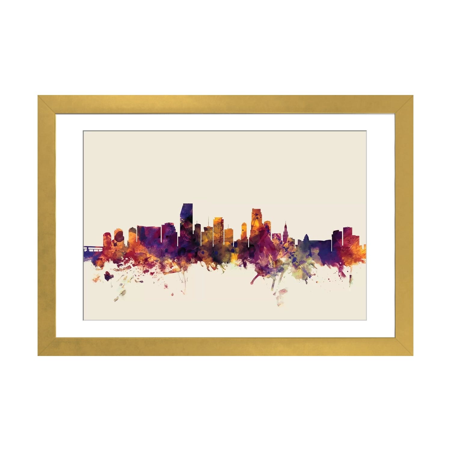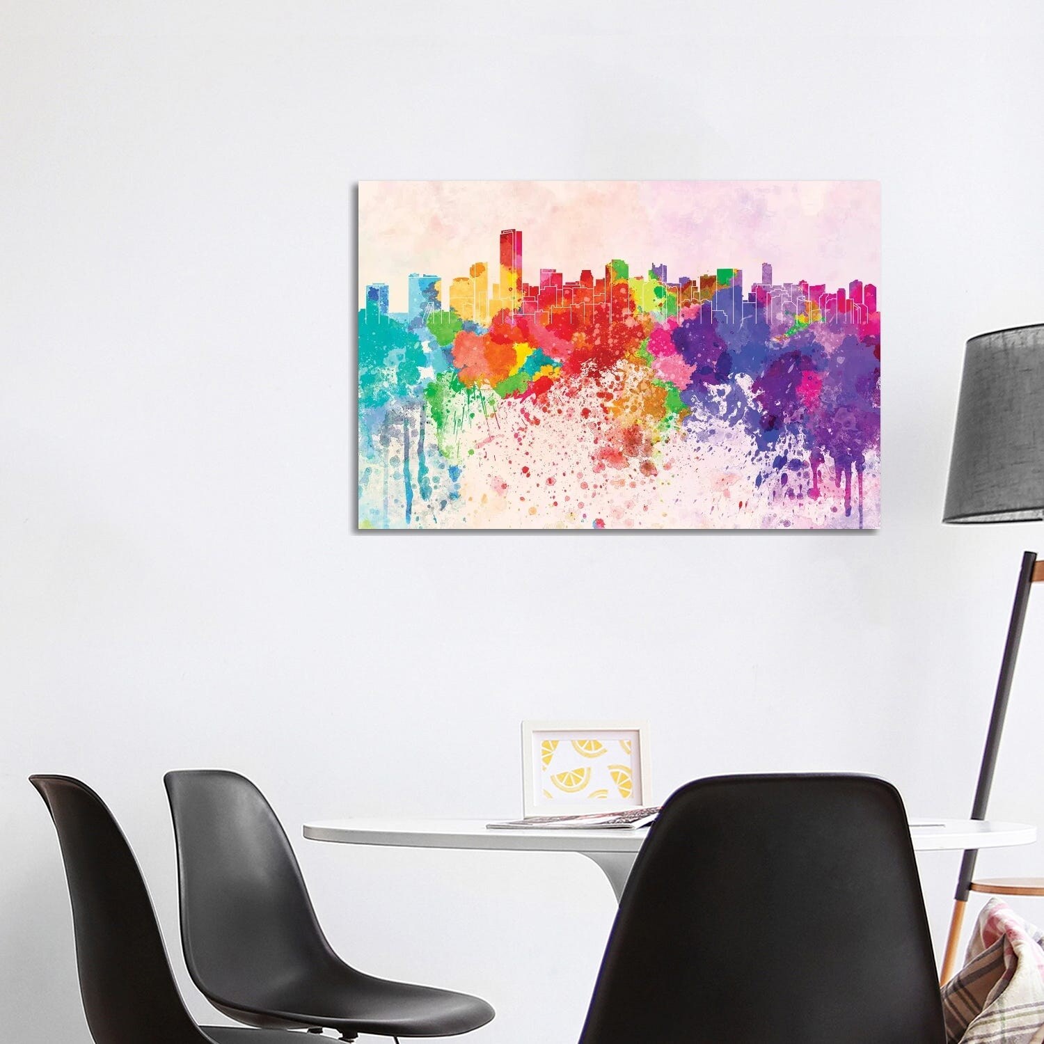 iCanvas "Miami Skyline in Watercolor Background" by Paul Rommer Canvas Print