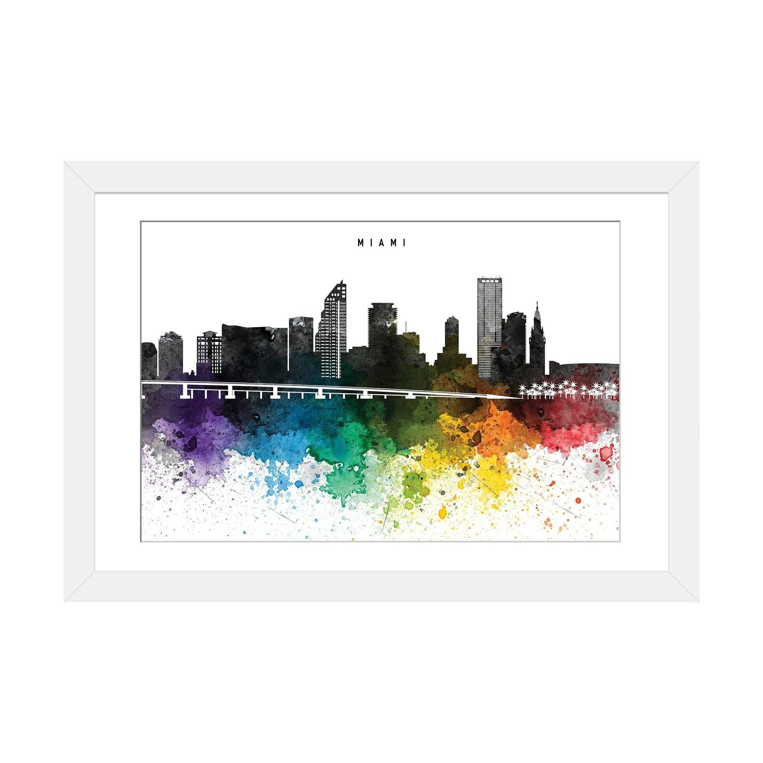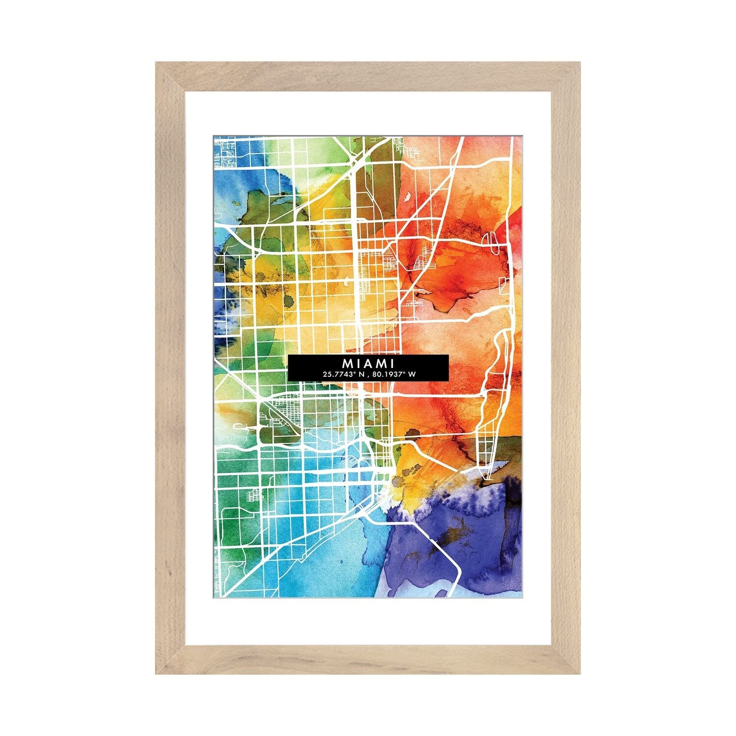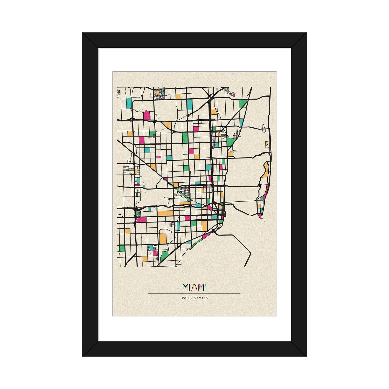 iCanvas "Miami City City Map Colorful Watercolor Style" by WallDecorAddict