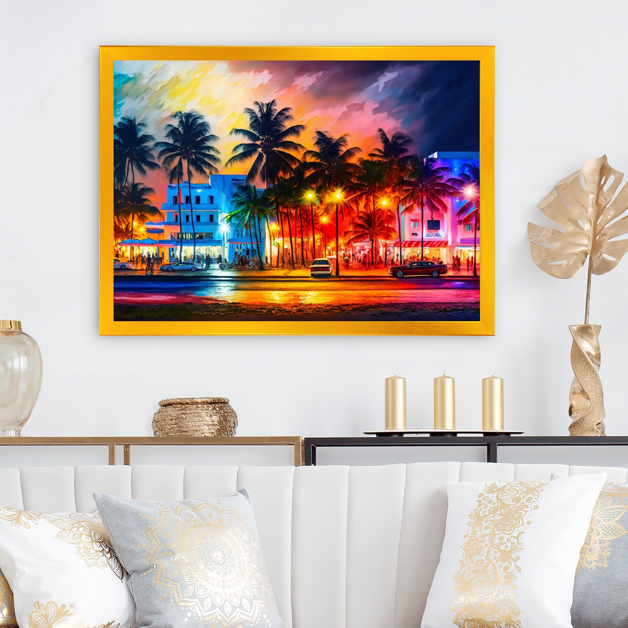 Designart "Miami Beach Holidays II" City Miami Framed Art Print