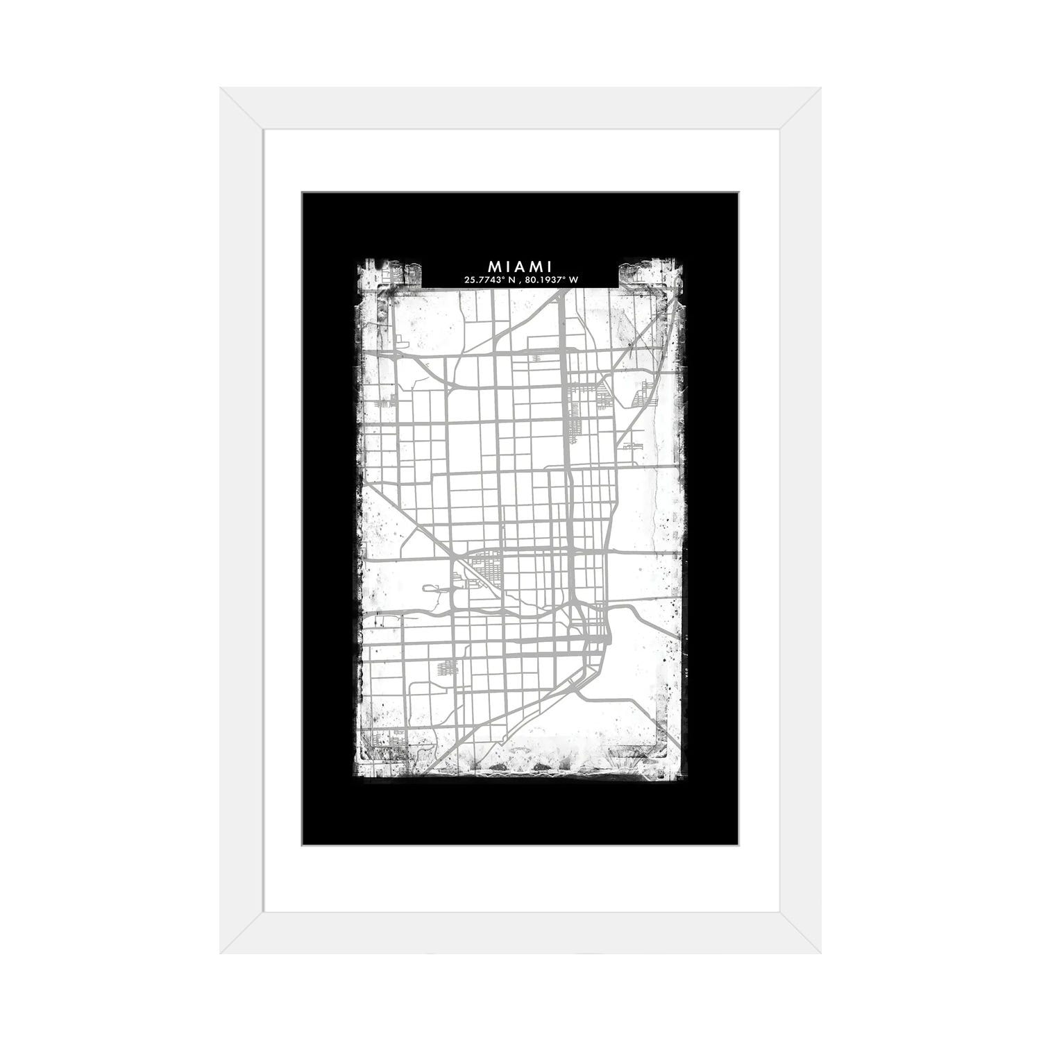 iCanvas "Miami City Map Black White Grey Style" by WallDecorAddict