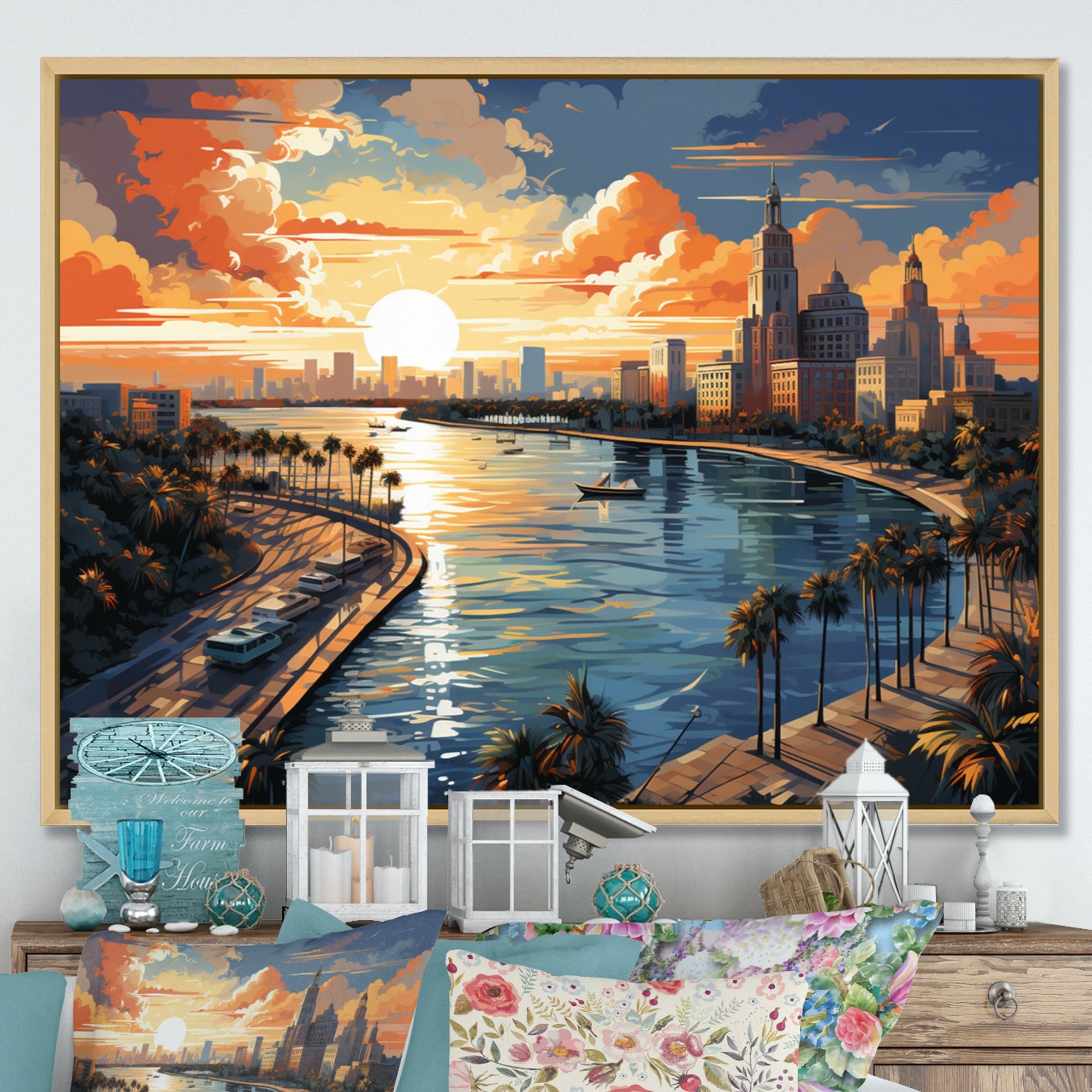 Designart "Sunshines State Miami II" Florida Framed Canvas Prints
