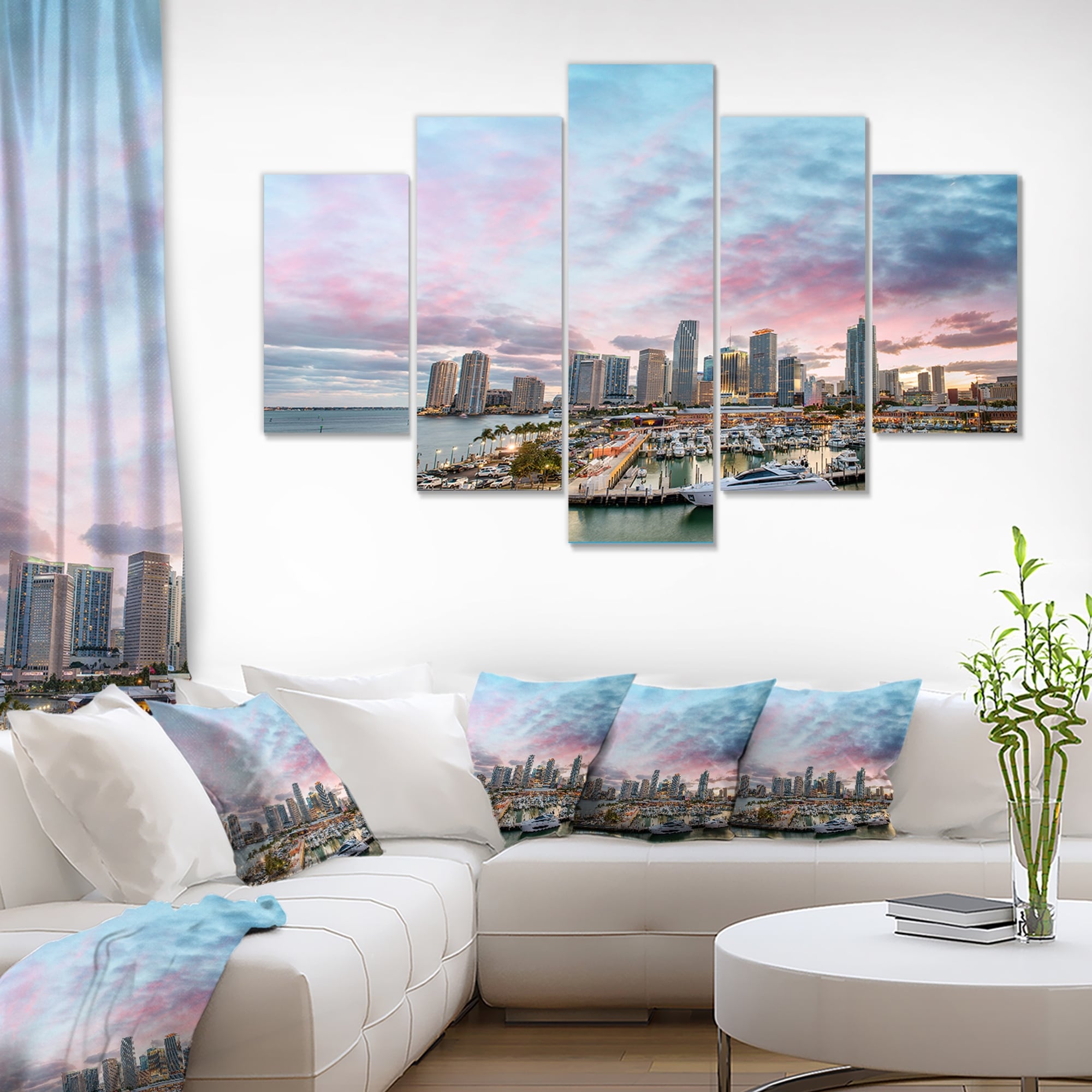 Designart "Downtown Miami at sunset Florida" Cityscapes Photography on Wrapped Canvas set