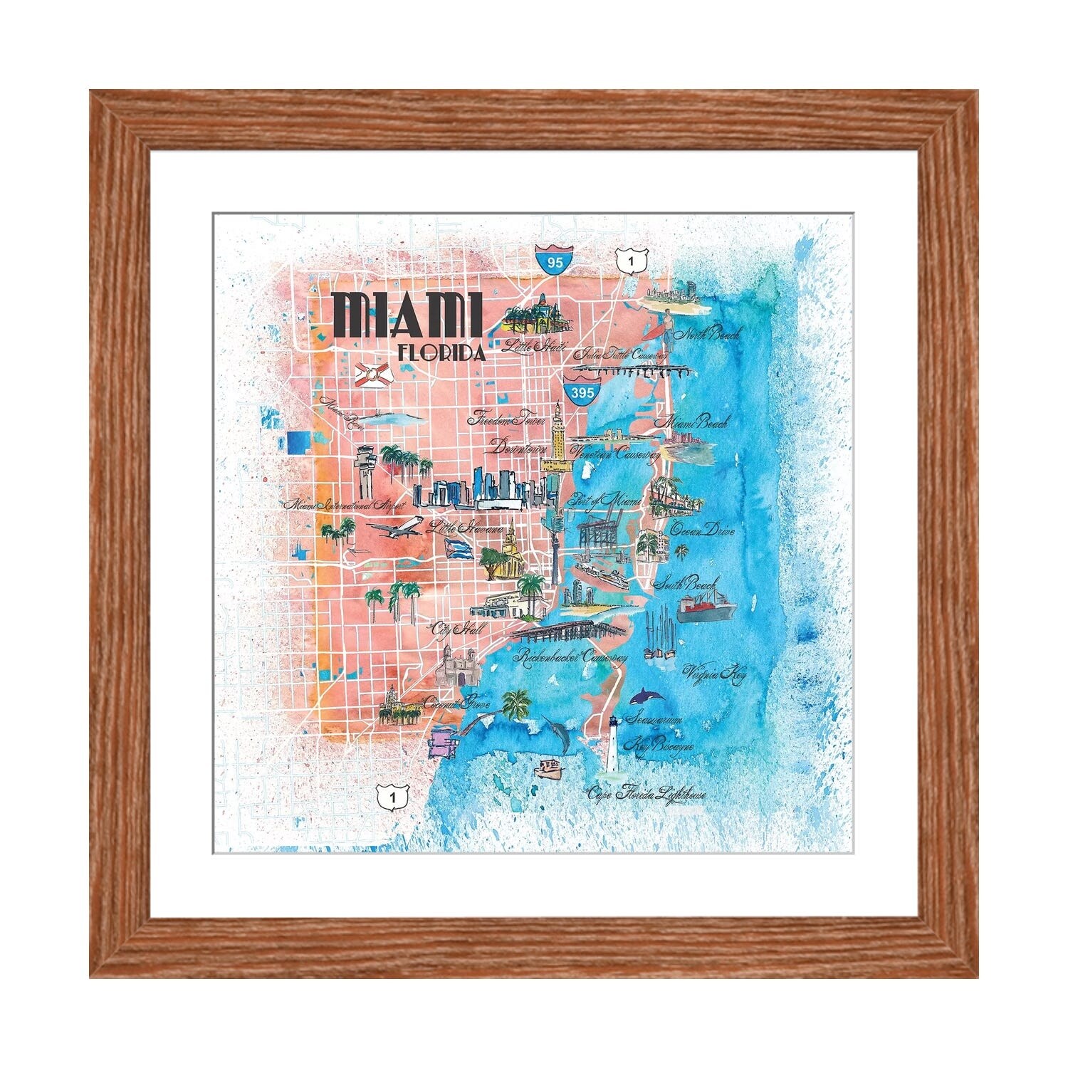 iCanvas "Miami Florida Illustrated Map" by Markus & Martina Bleichner