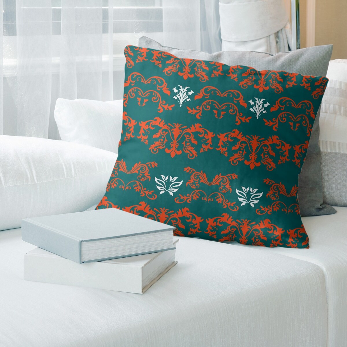 Miami Throwback Football Baroque Pattern Accent Pillow-Cotton Twill