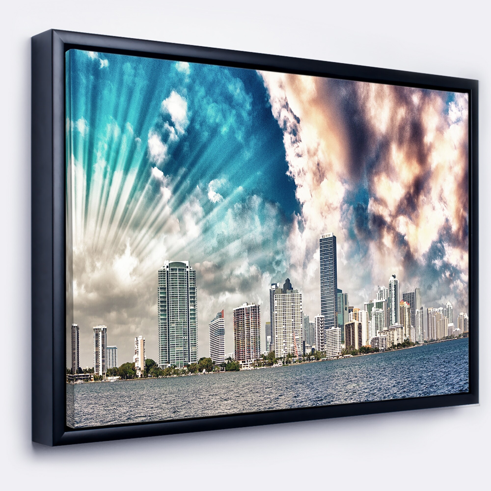 Designart "Miami Skyline with Clouds" Cityscape Photo Framed Canvas Print