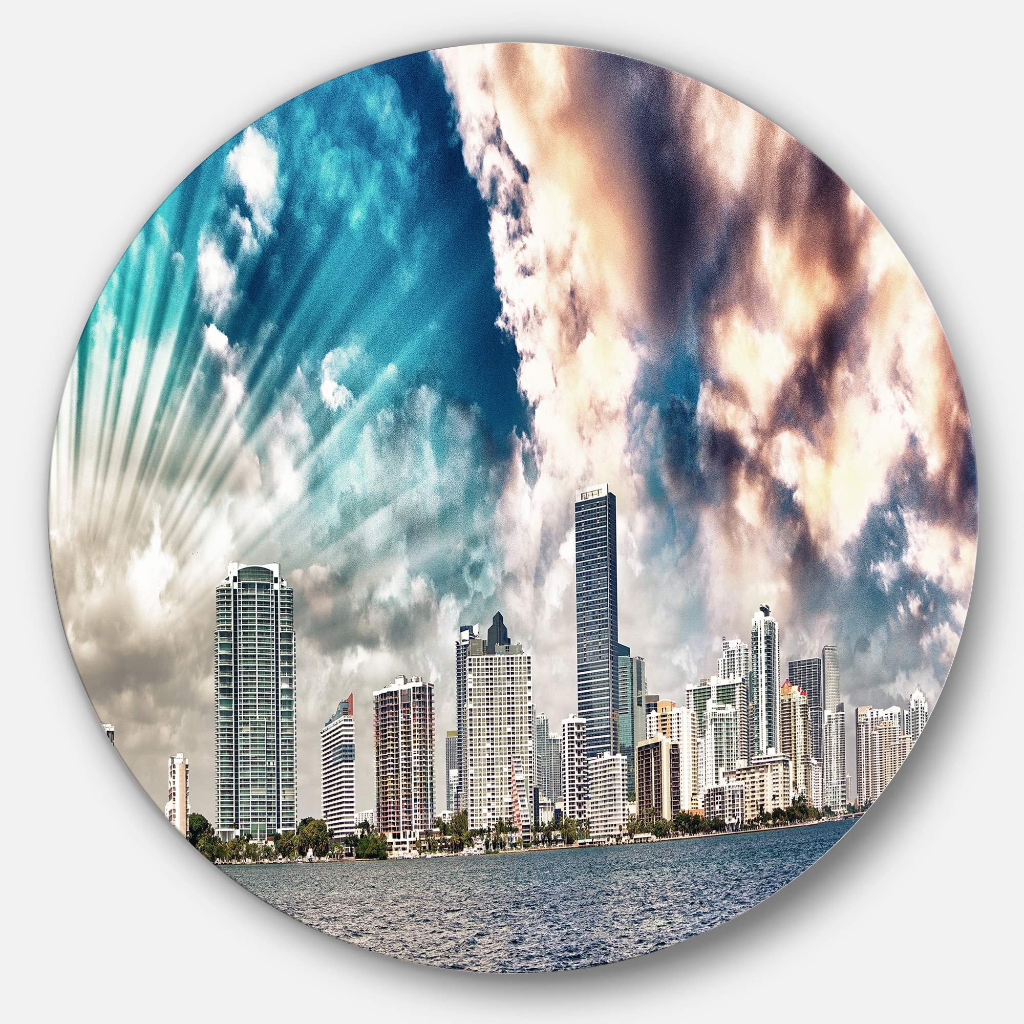 Designart 'Miami Skyline with Clouds' Cityscape Photo Round Wall Art