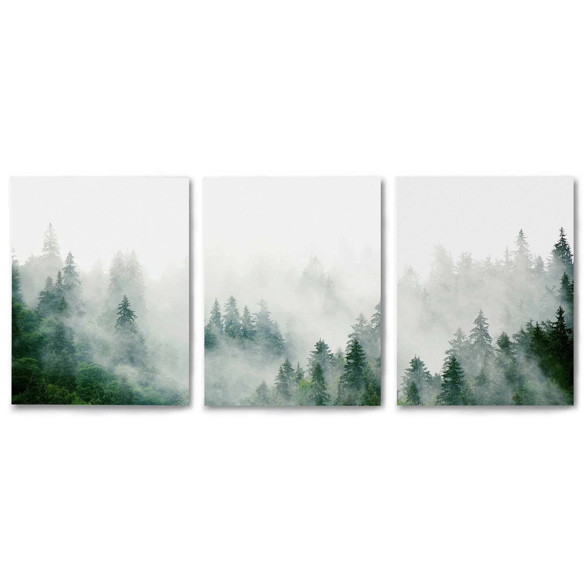 Canvas Triptych 3 Piece Art Set Green Mountain Mist by Tanya Shumkina