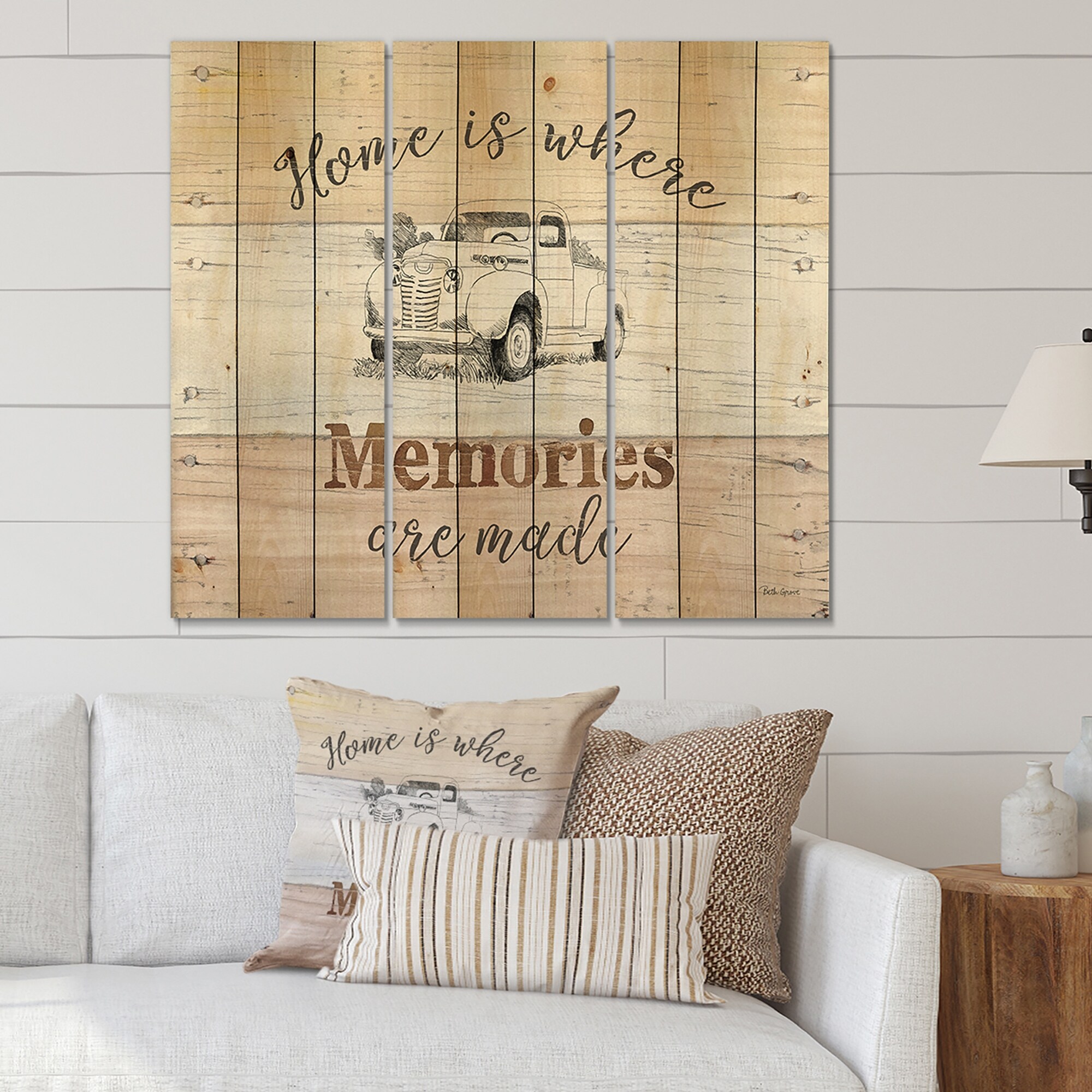 Designart 'Farmhouse Moment Truck' Farmhouse Print on Natural Pine Wood - 3 Panels